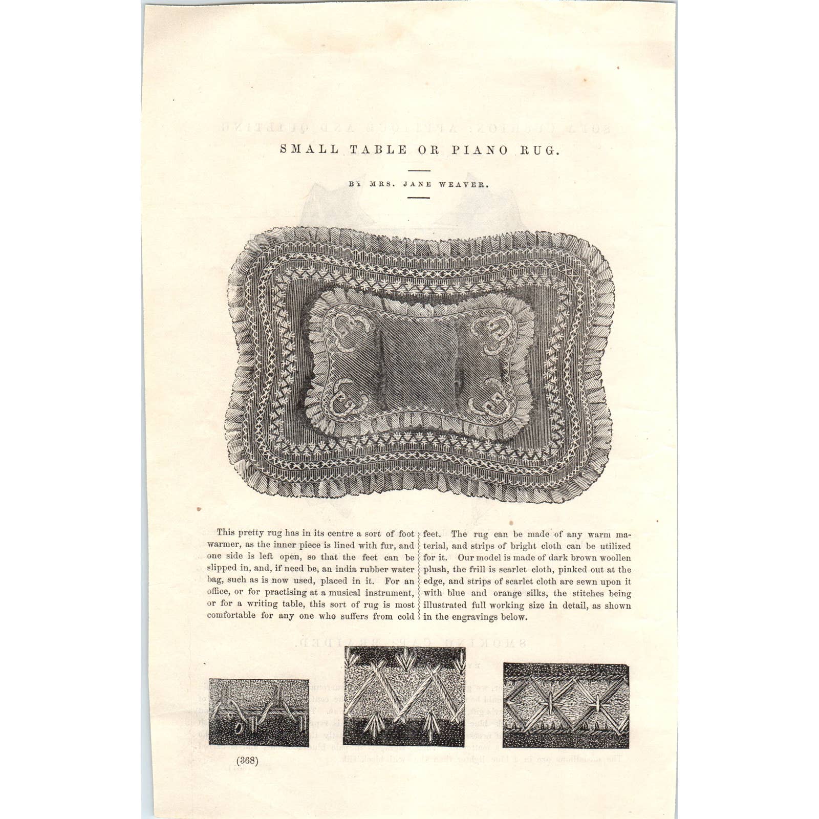 Small Table or Piano Rug - Victorian Fashion Plate - 1878 Original Plate TJ7-L2
