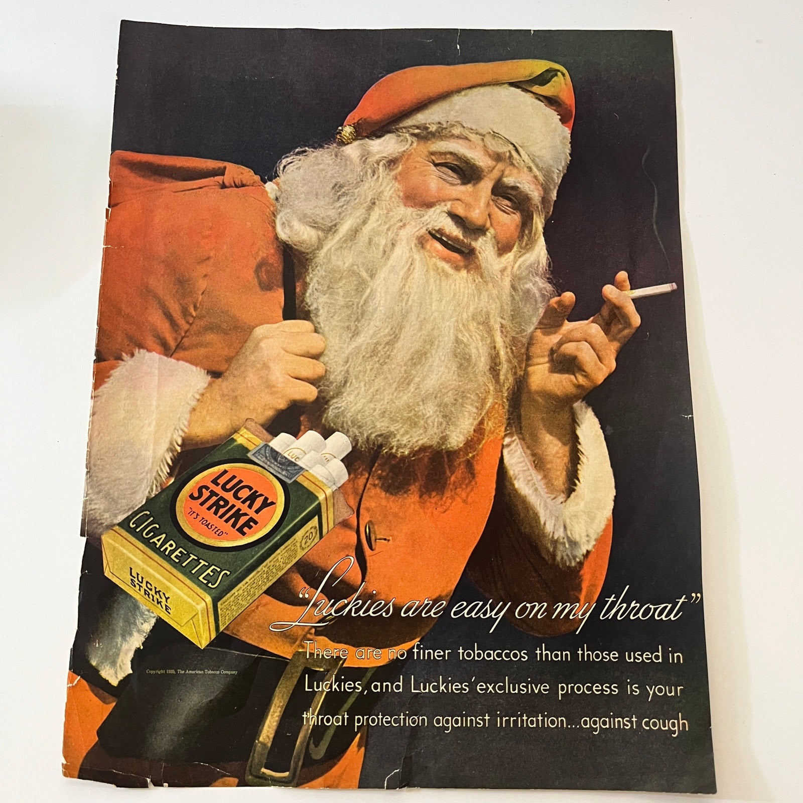Smoking Santa Christmas Lucky Strikes 1936 Magazine Ad V1-6