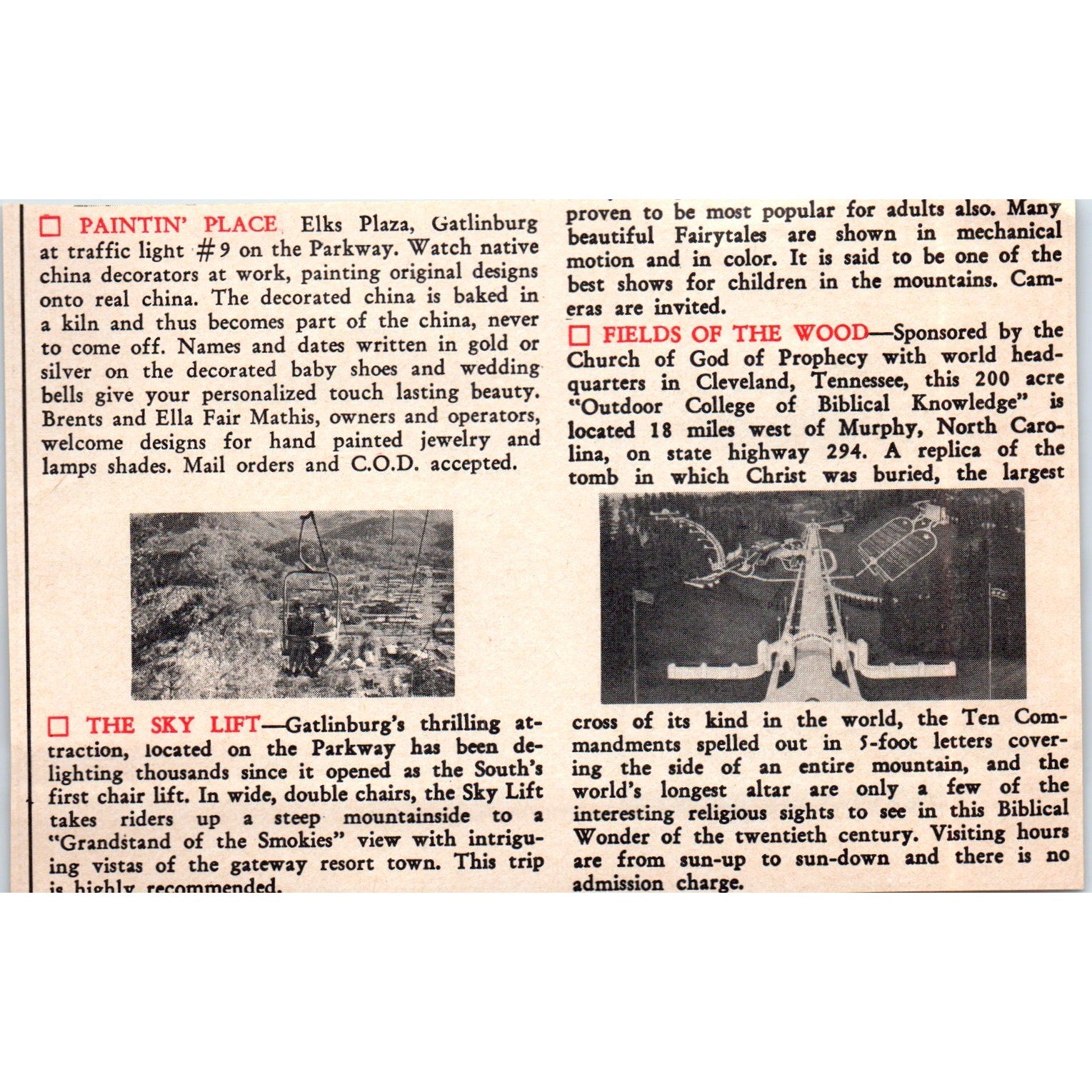 This is a SMALL Ad, around 5" wide. If you need an exact measurement please ask. Original piece pulled from 1973 This Week in the Land of The Smokies & Southern Highlands TN. There may be some light staining, tears, and/or other signs of wear and tear. See pics for condition.