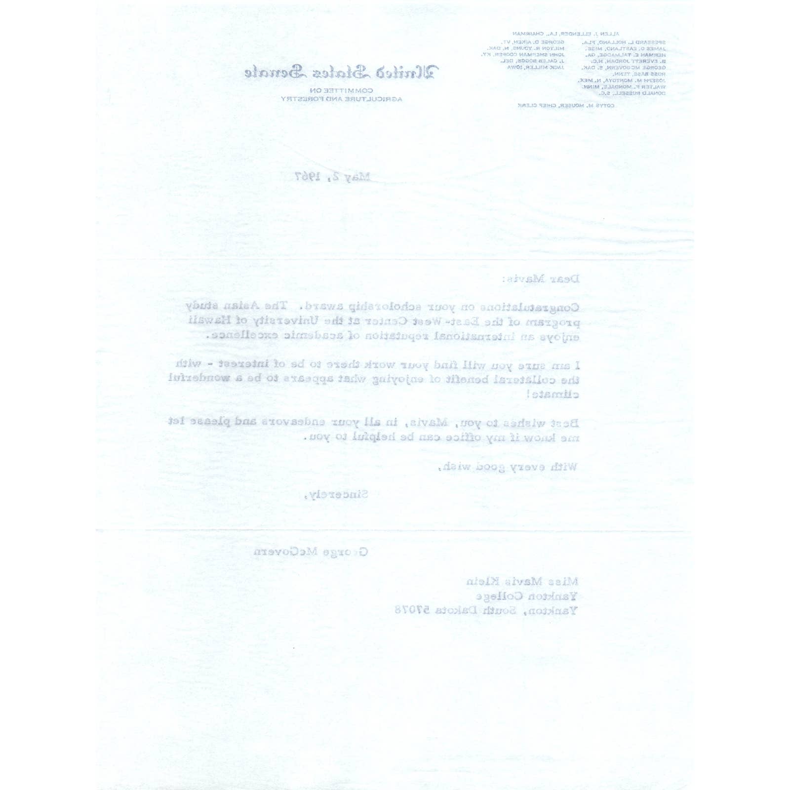 South Dakota Senator George McGovern Official Letterhead Signed May 1967 TK1-GM