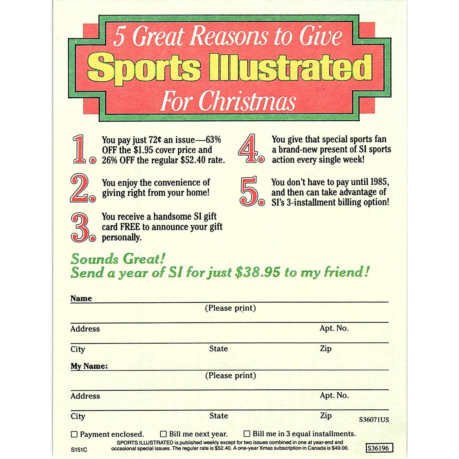 Sports Illustrated For Christmas Postal Mailing Card 1984 Ad AF8-H2