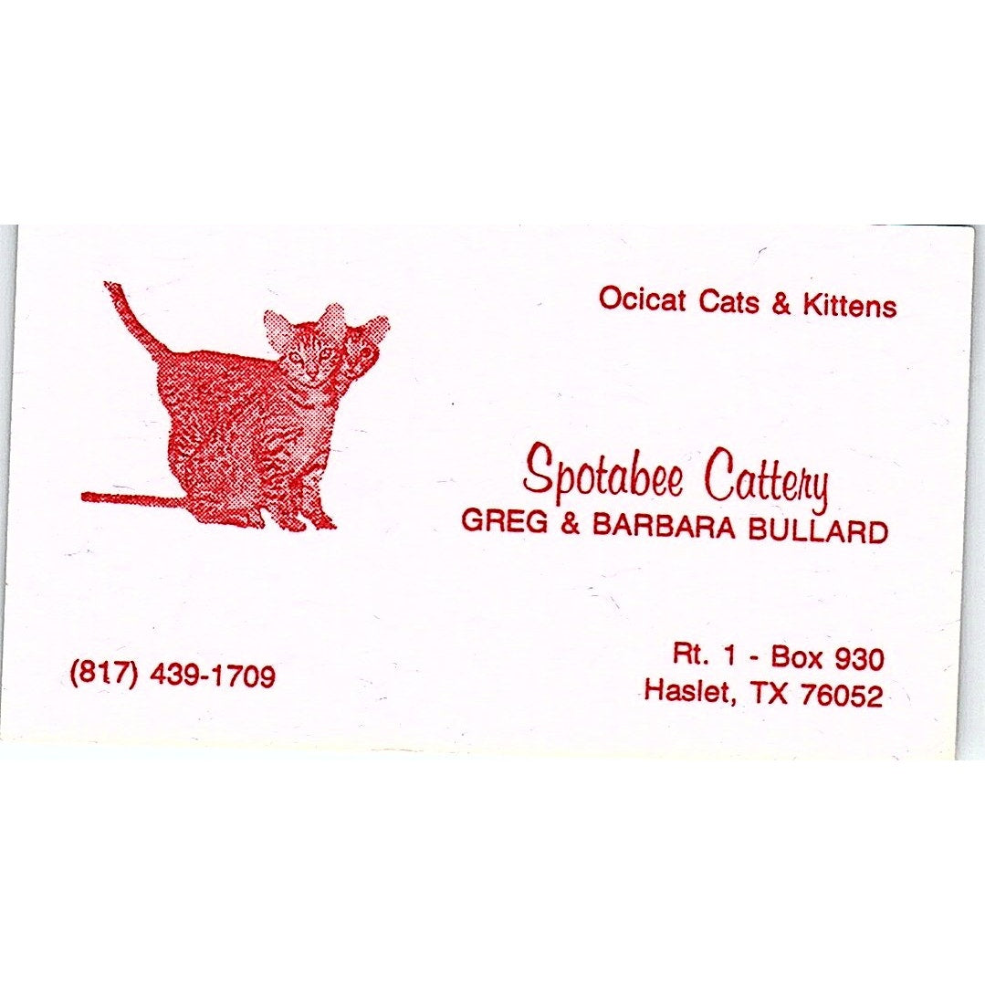 Spotabee Cattery Greg & Barbara Bullard Ocicats Haslet TX Vintage Business Card SD9-B14