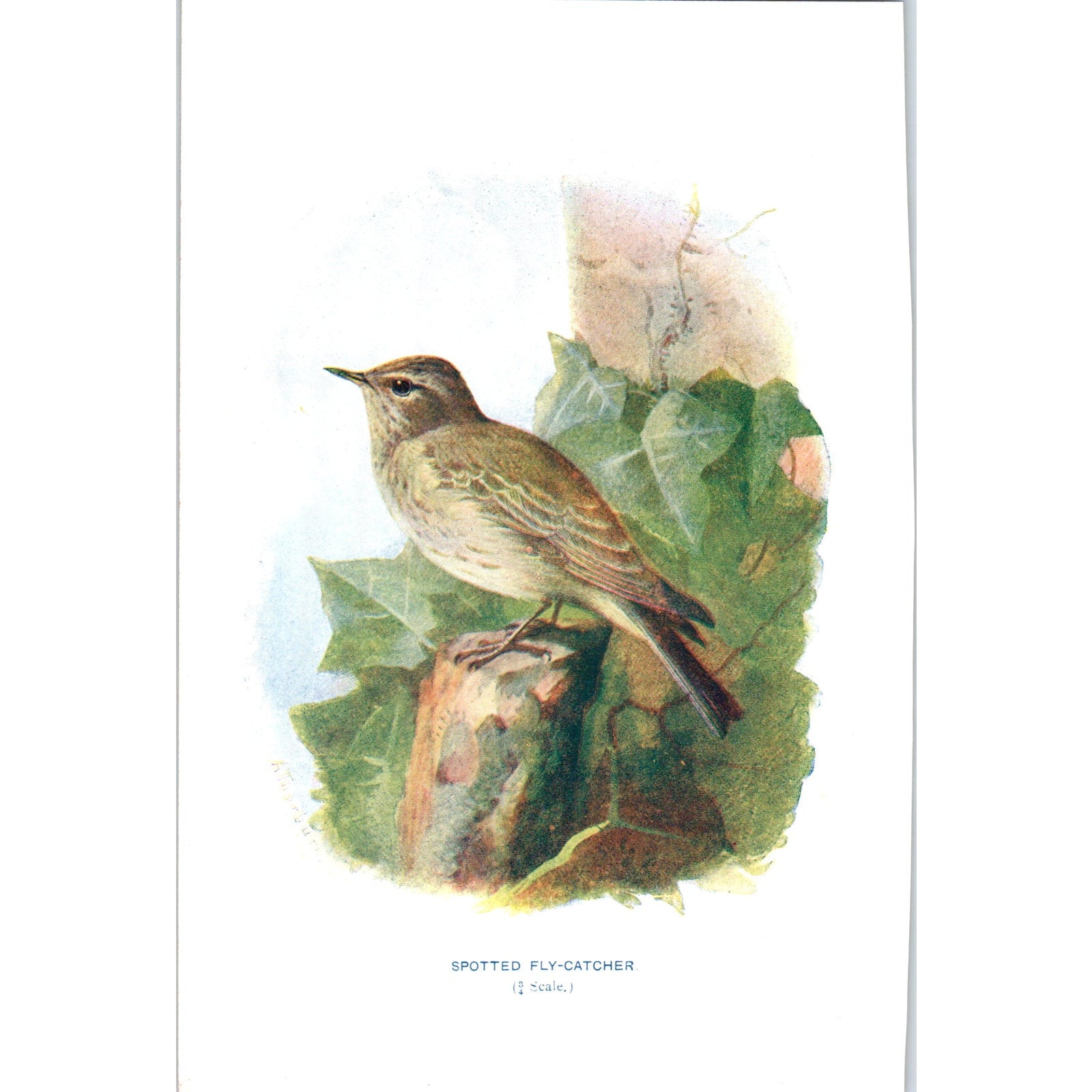 Spotted Fly-Catcher Bird 1903 Original Color Engraving Plate Print AD8-B8