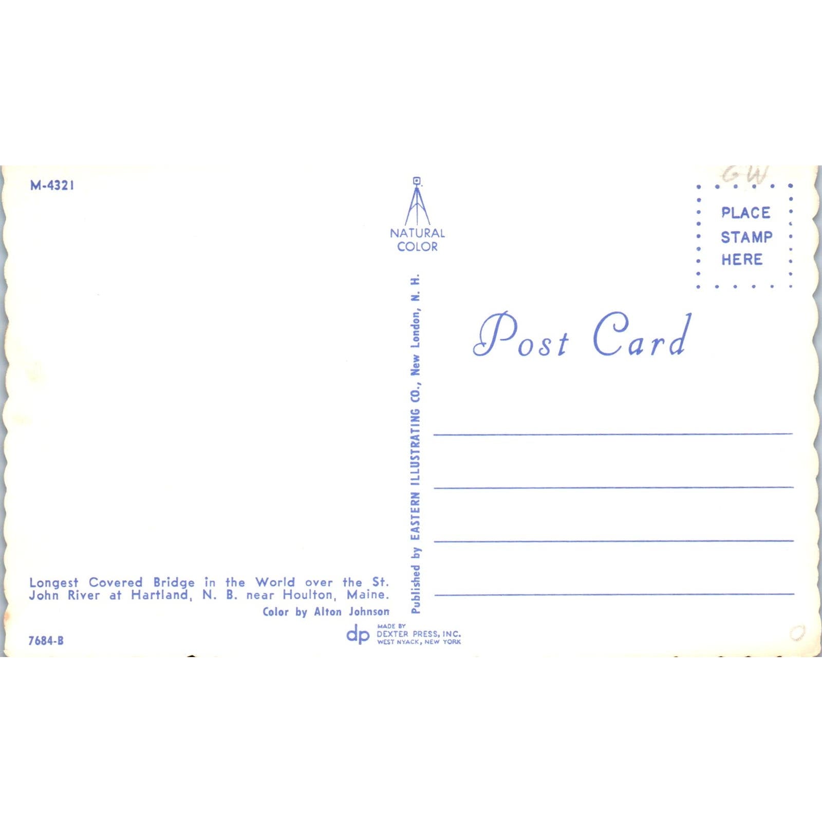St. John River Hartland NB Near Houlton ME Vintage Covered Bridge Postcard PC14
