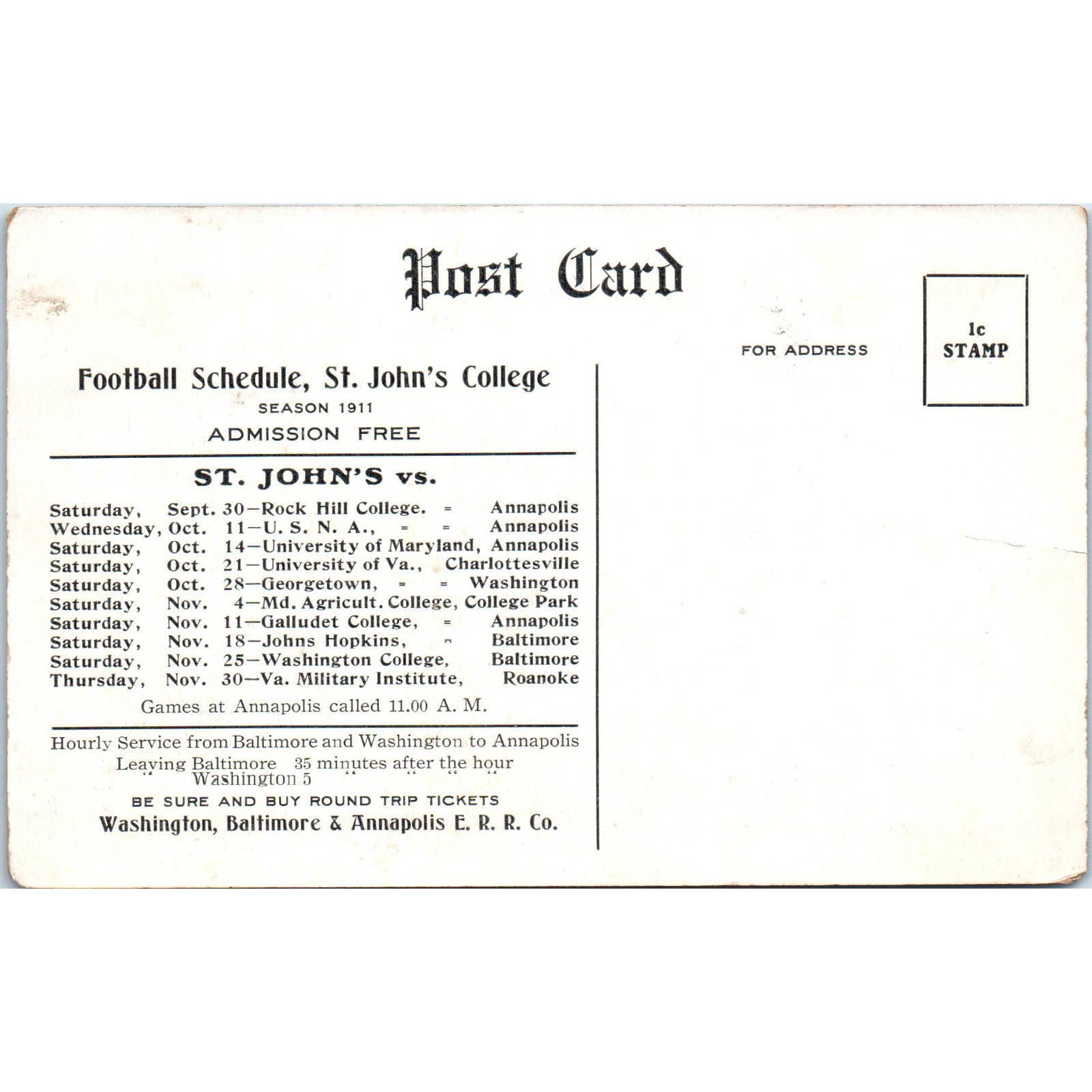 St. John's College 1911 Football Schedule Original Postcard TK1-23