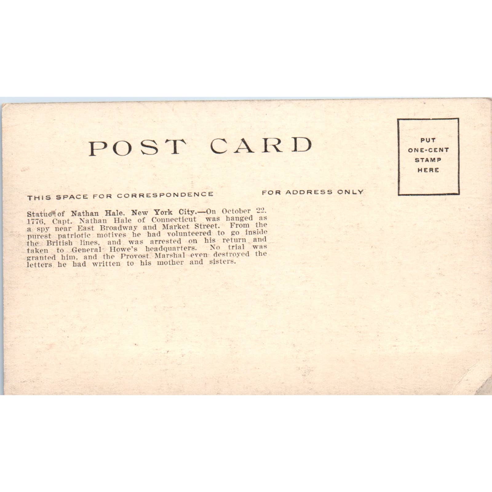 Statue of Nathan Hale New York City c1910 Original Postcard TK1-27