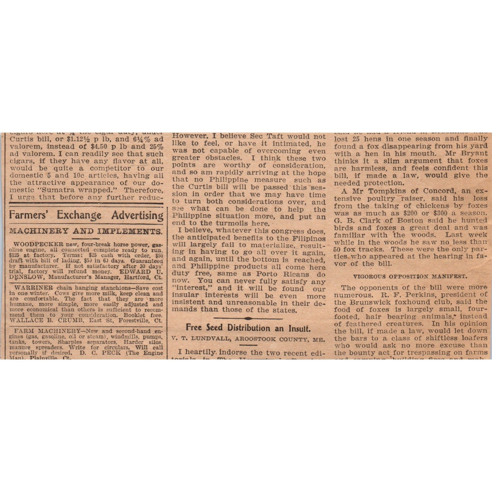 This is a SMALL ad, measuring approx 4x6". Original piece pulled from Feb 18, 1905 New England Homestead Magazine. There may be some light staining, tears, and/or other signs of wear and tear. See pics for condition.