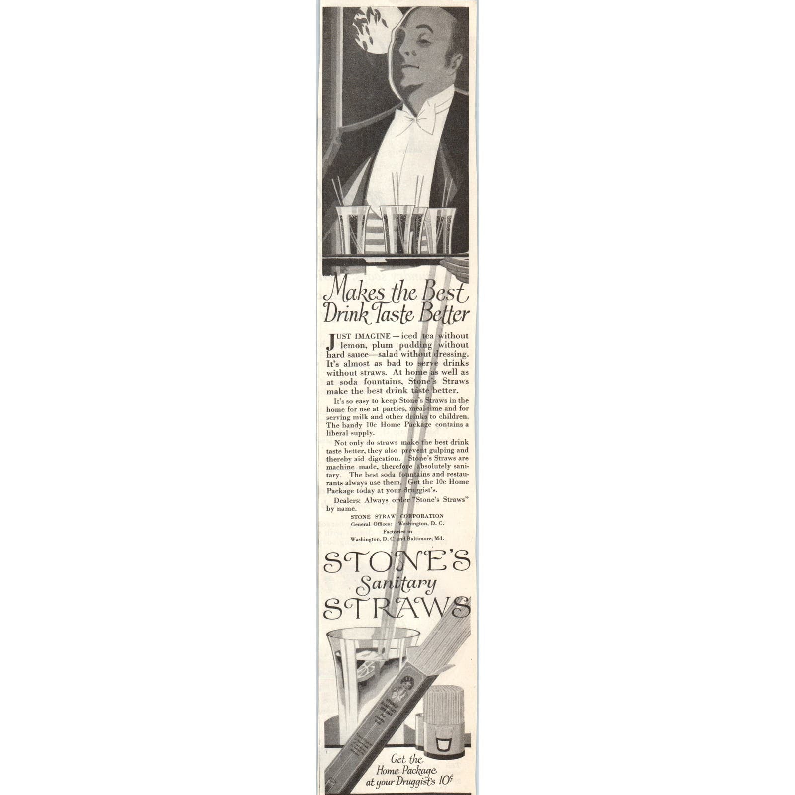 Stone's Sanitary Straws 1928 Original Magazine Advertisement FL6-8