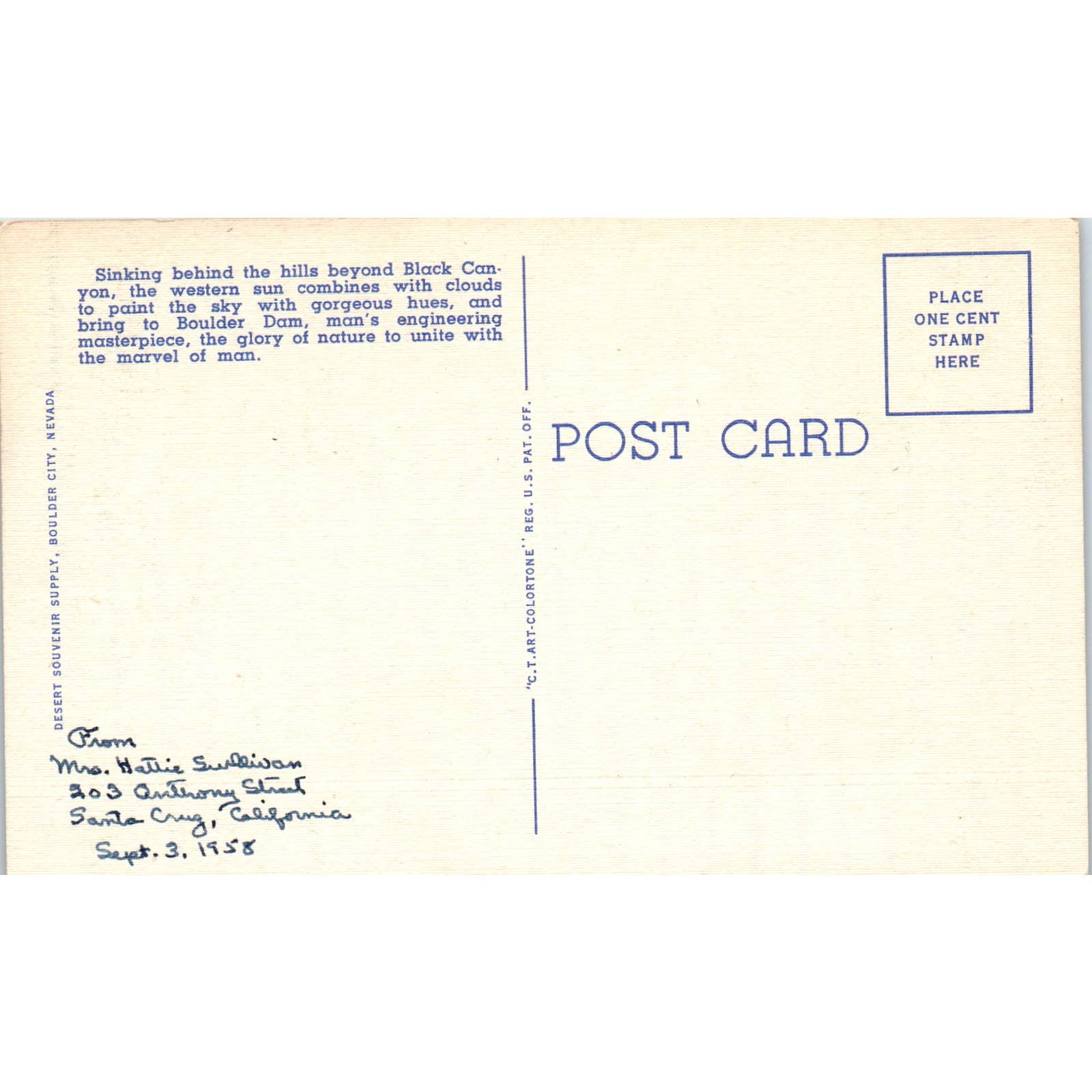 Sunset at Boulder Dam Colorado Original Postcard TK1-P1