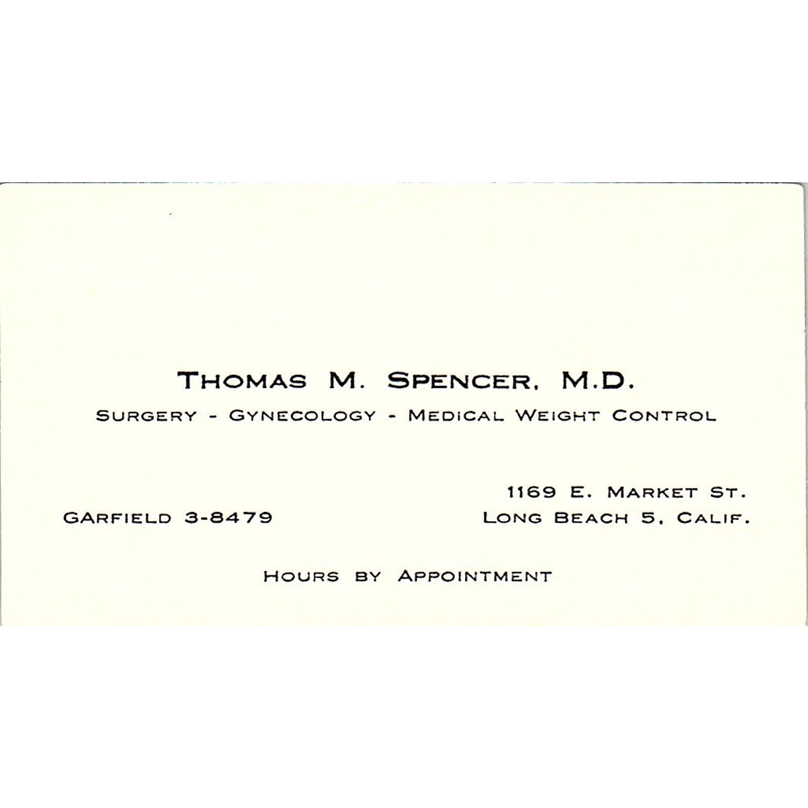 Surgery-Gynecology-Medical Thomas M Spencer Long Beach California . Vintage Business Card SF3-B9