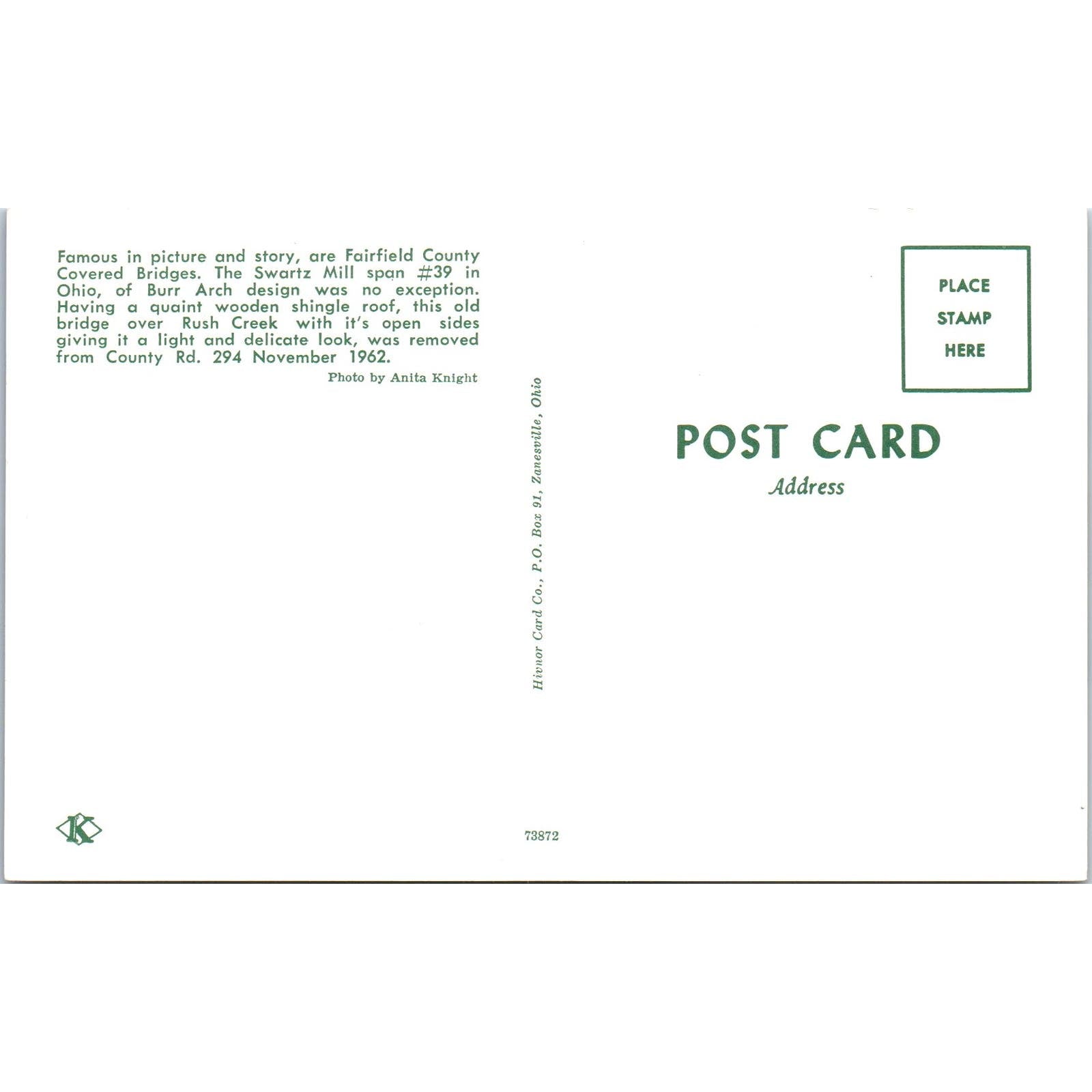 Swartz Mill Span #39 Fairfield County Ohio Covered Bridge Postcard PB13