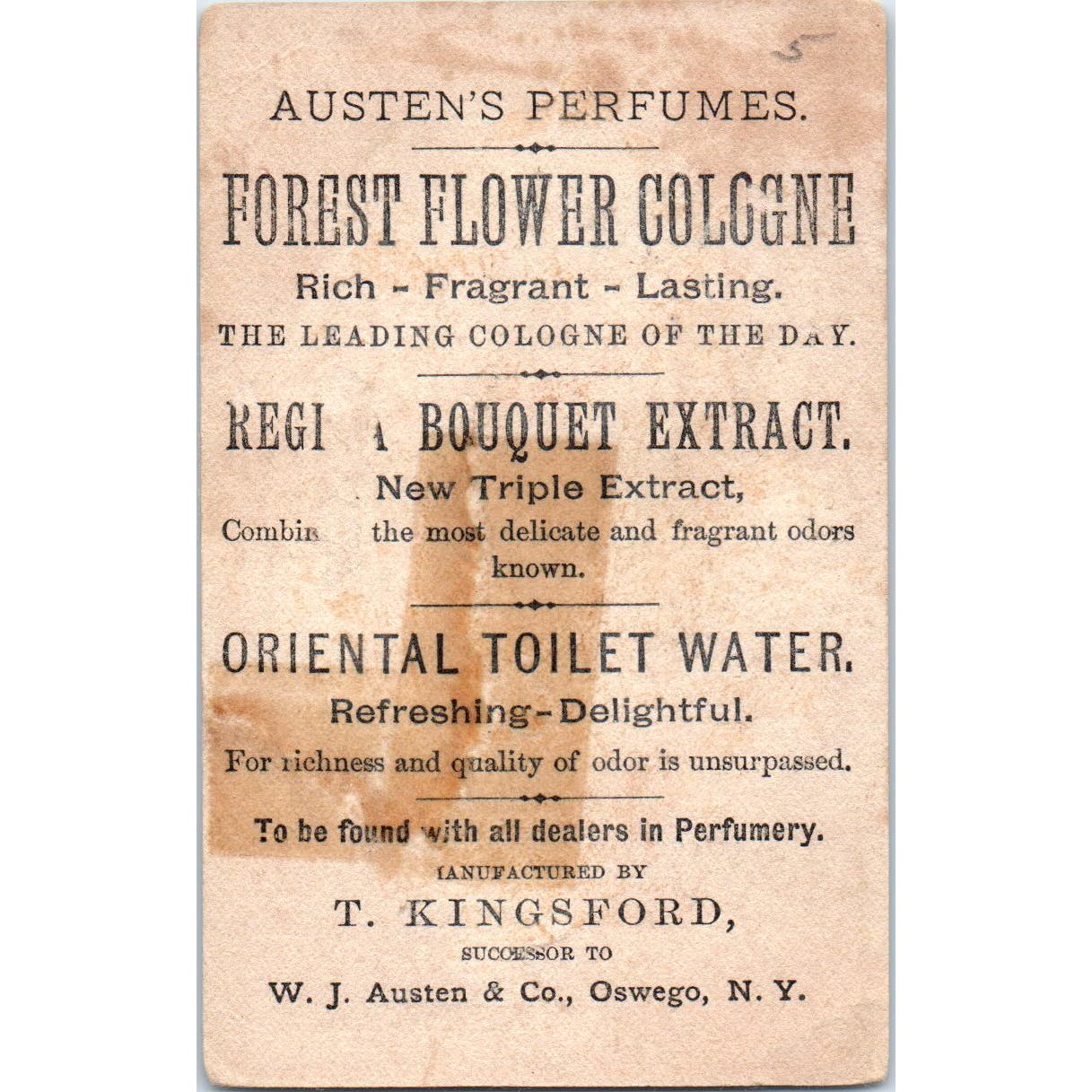 T. Kingsford W.J. Austen & Co Perfume Oswego NY c1880 Victorian Trade Card AE5
