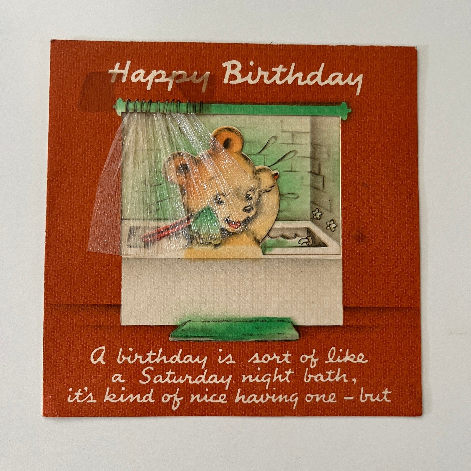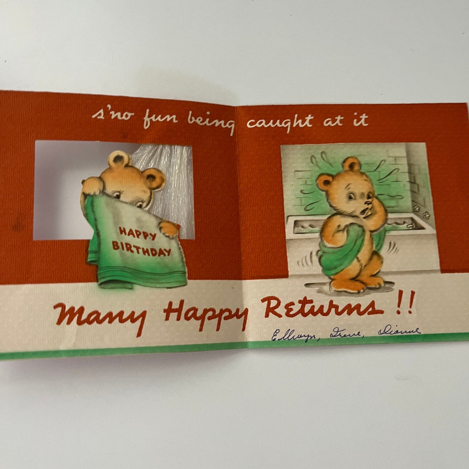 Teddy Bear in a Bathtub Original 1938 Hallmark Birthday Card AI9-H3