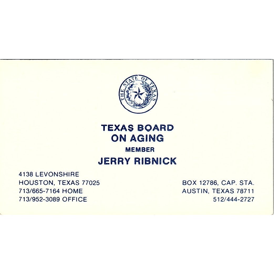 Texas Board On Aging Jerry Ribnick Austin Texas Vintage Business Card SF3-B3