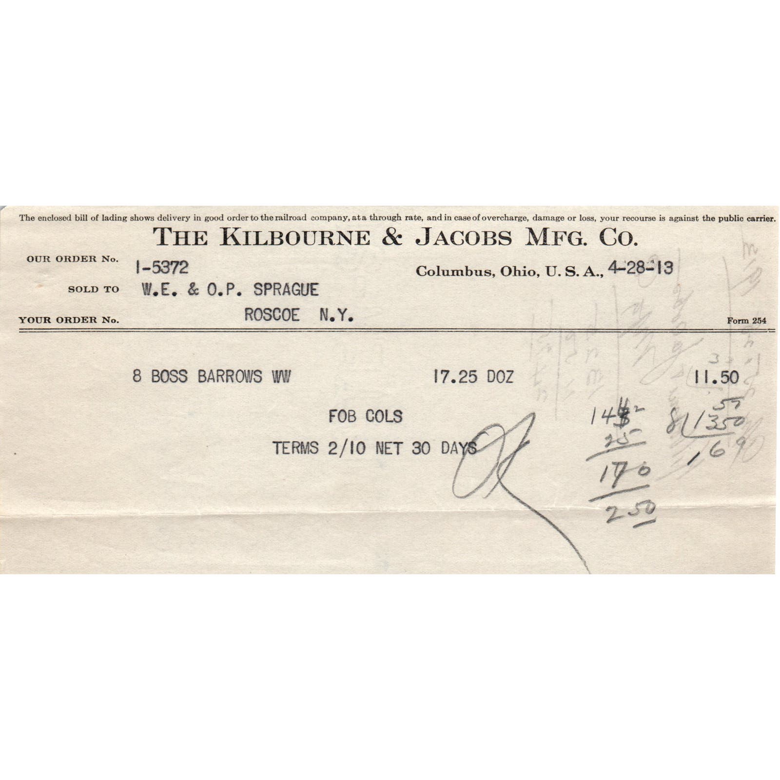 TH Kilbourne & Jacobs Mfg Co Columbus OH 1913 Original Billhead Receipt D8-LL