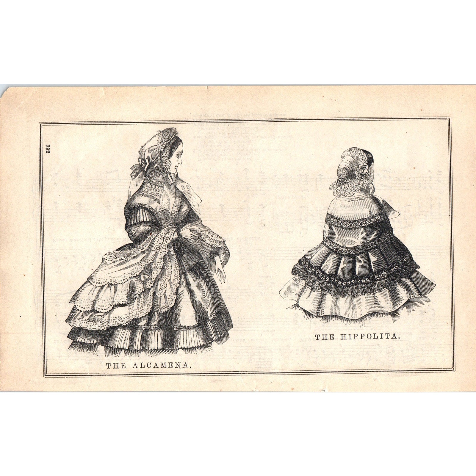 The Alcamena and Hippolita Lady's Fashion Plate 1857 Original Engraving D19-1