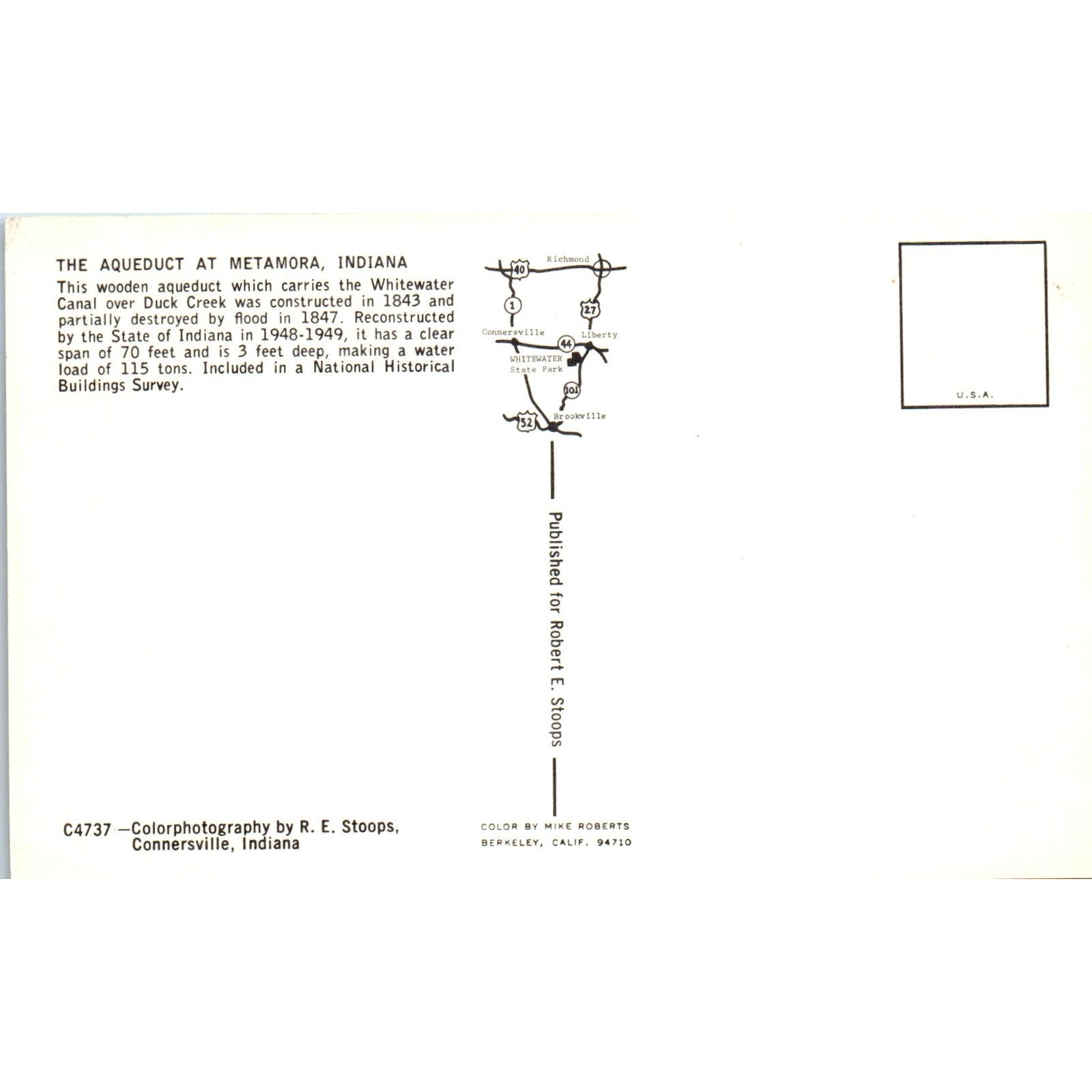 The Aqueduct at Metamora Indiana Duck Creek Covered Bridge Postcard PC1