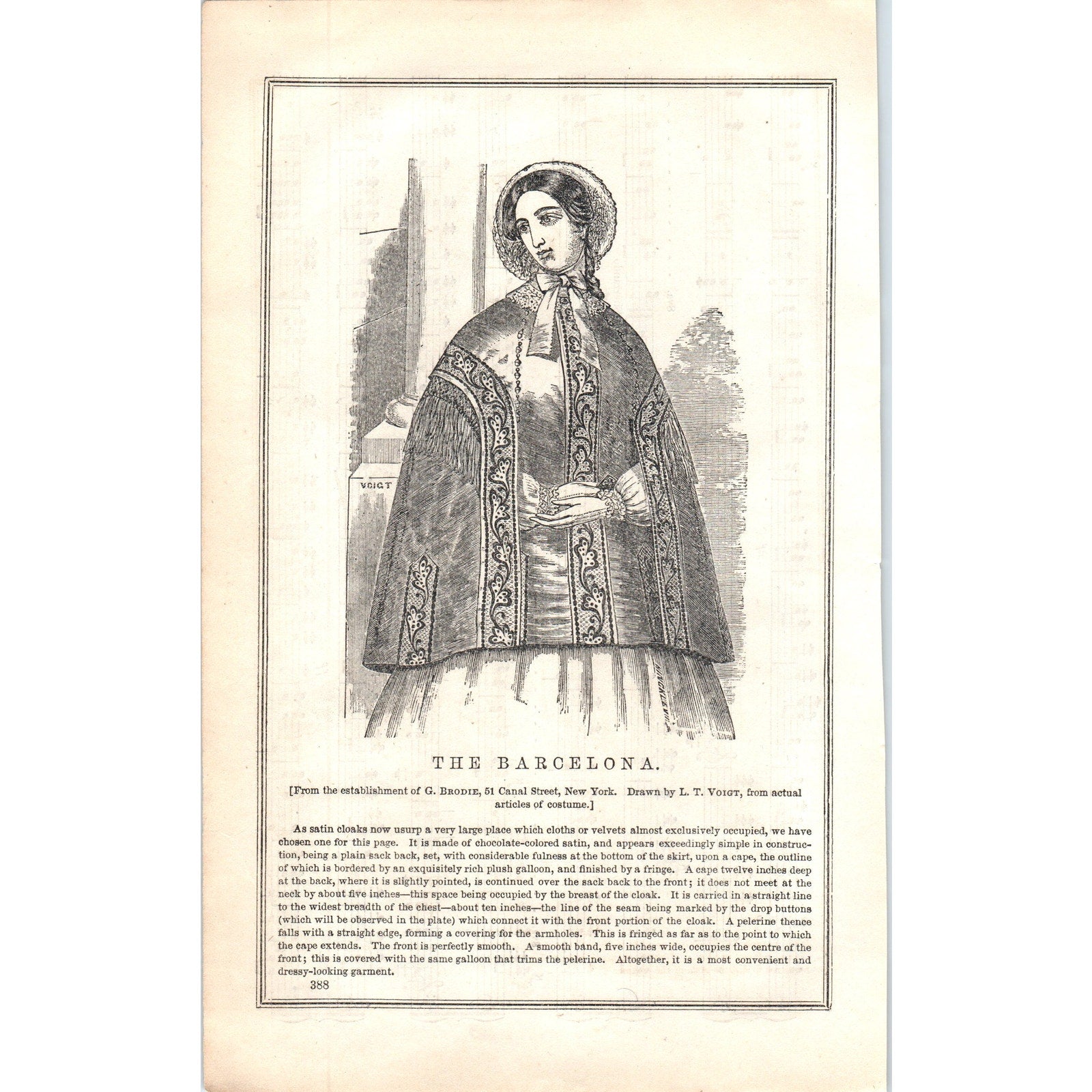 The Barcelona Lady's Fashion Plate 1857 Original Engraving D19-1