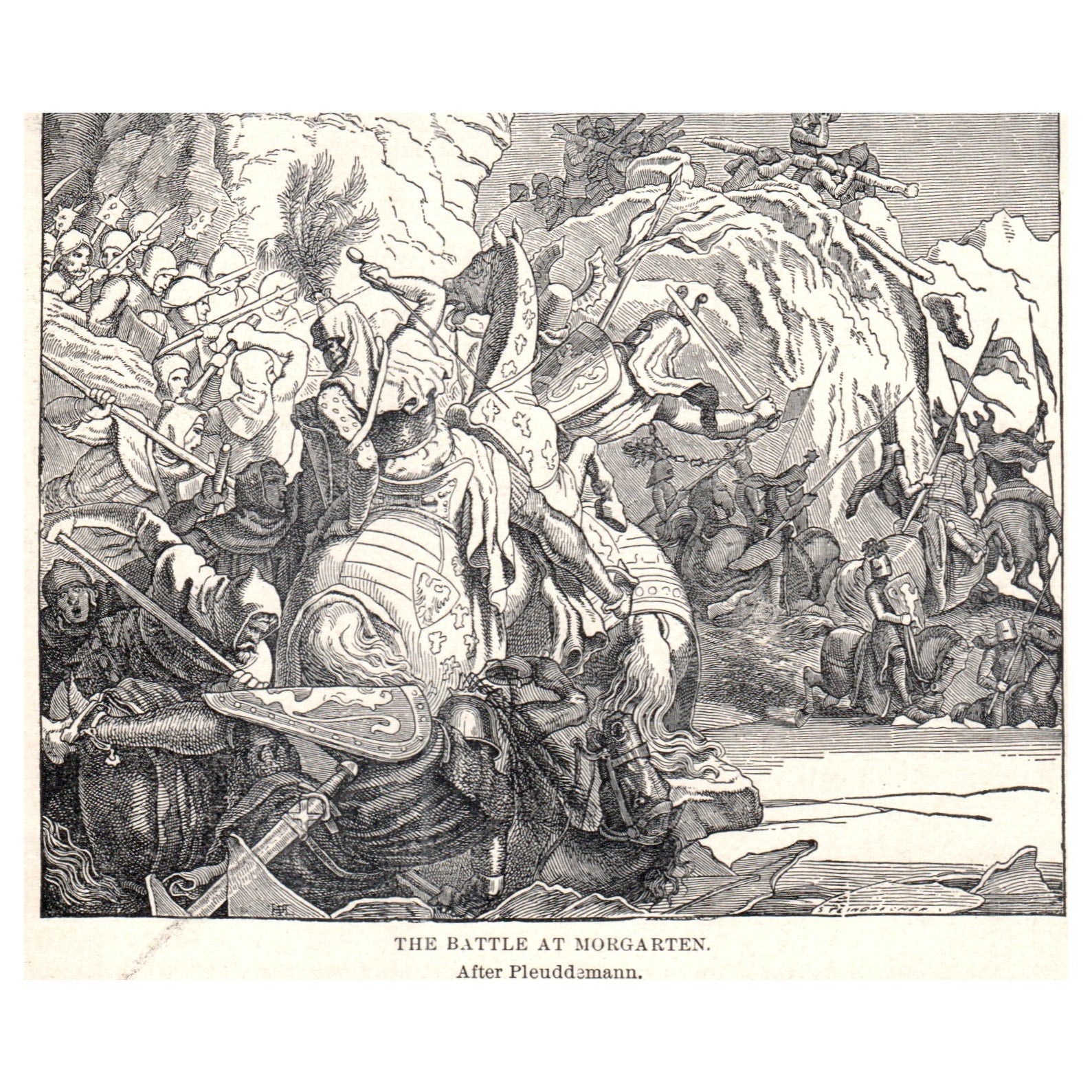The Battle at Morgarten after Plueddemann 1911 Engraving Print AF5-7