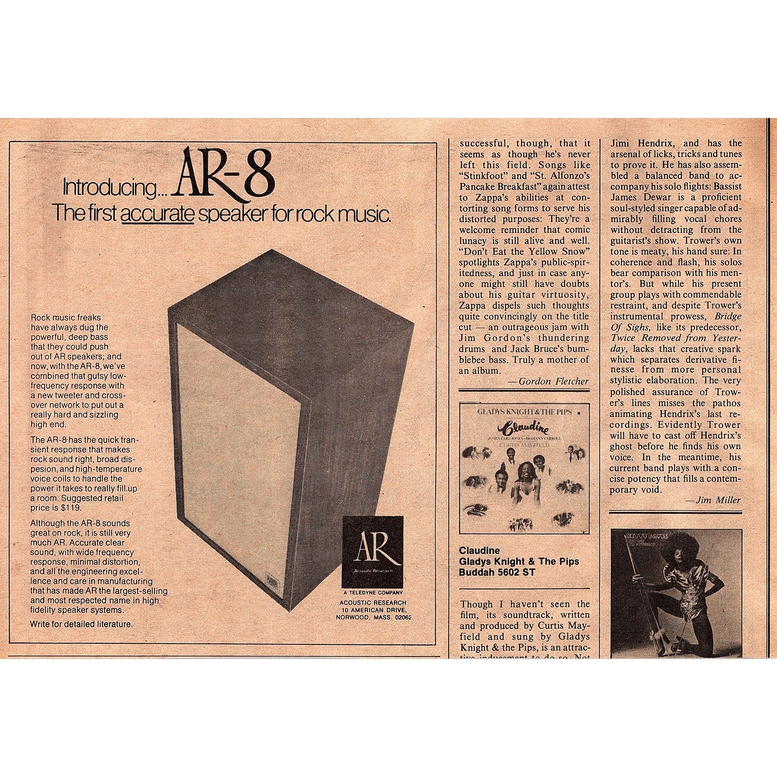 Size is approximate. Original piece taken from a 1974 Issue of Rolling Stone Magazine. Has regular wear and tear you would expect from a piece this age. See pics for condition.