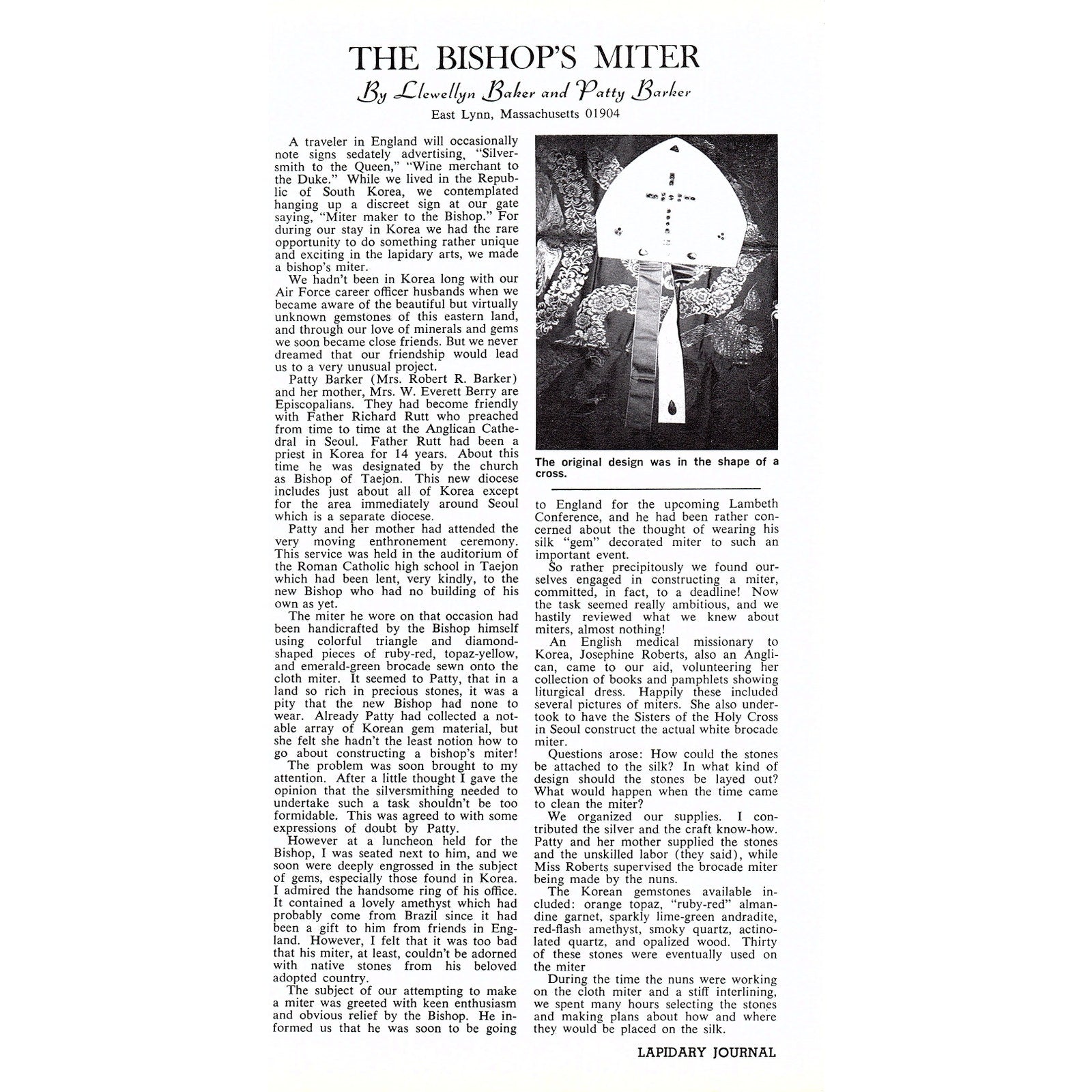 The Bishop's Miter Llewellyn Baker Patty Barker East Lynn MA 1972 Article AF8-2