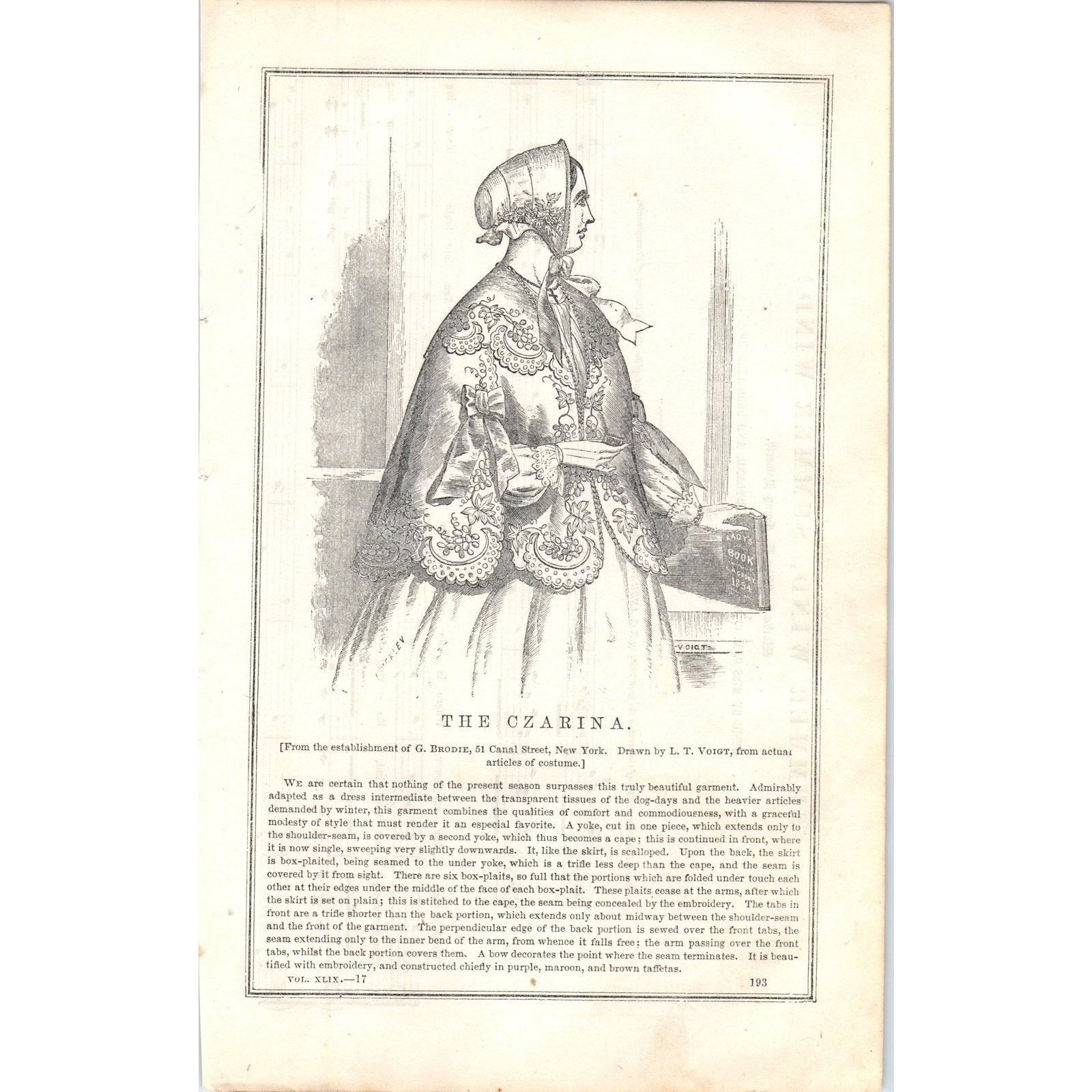 The Czarina Lady's Fashion Plate 1857 Original Engraving D19-1