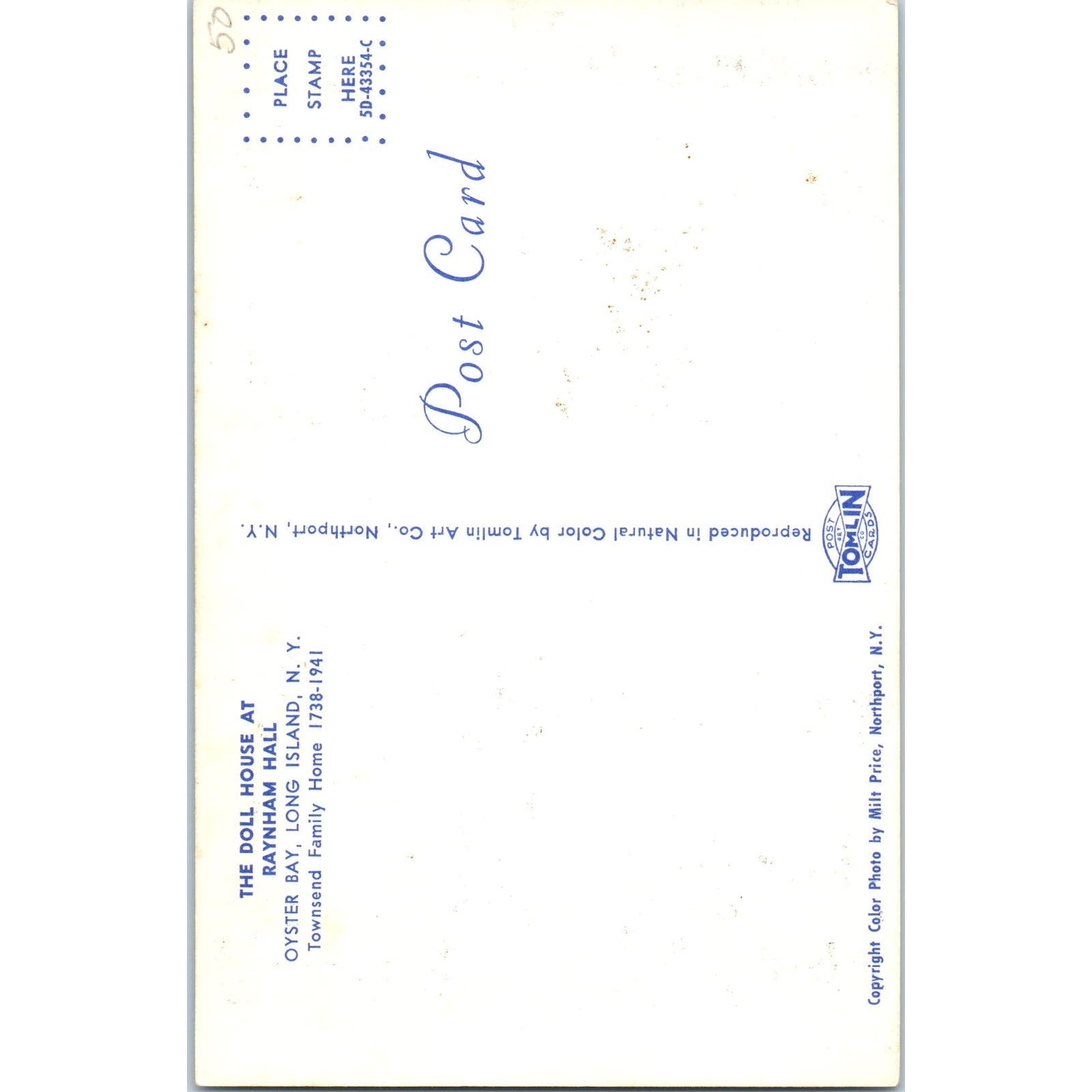 The Doll House at Raynham Hall Oyster Bay NY Original Postcard PB10