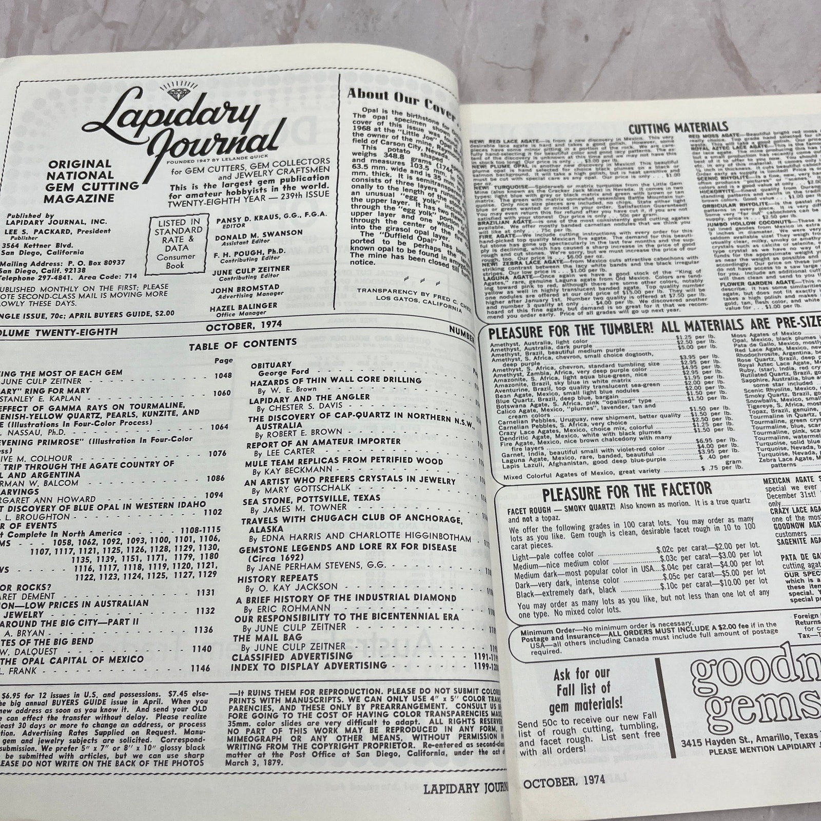 The Duffield Opal - Lapidary Journal Magazine - Oct 1974 M22