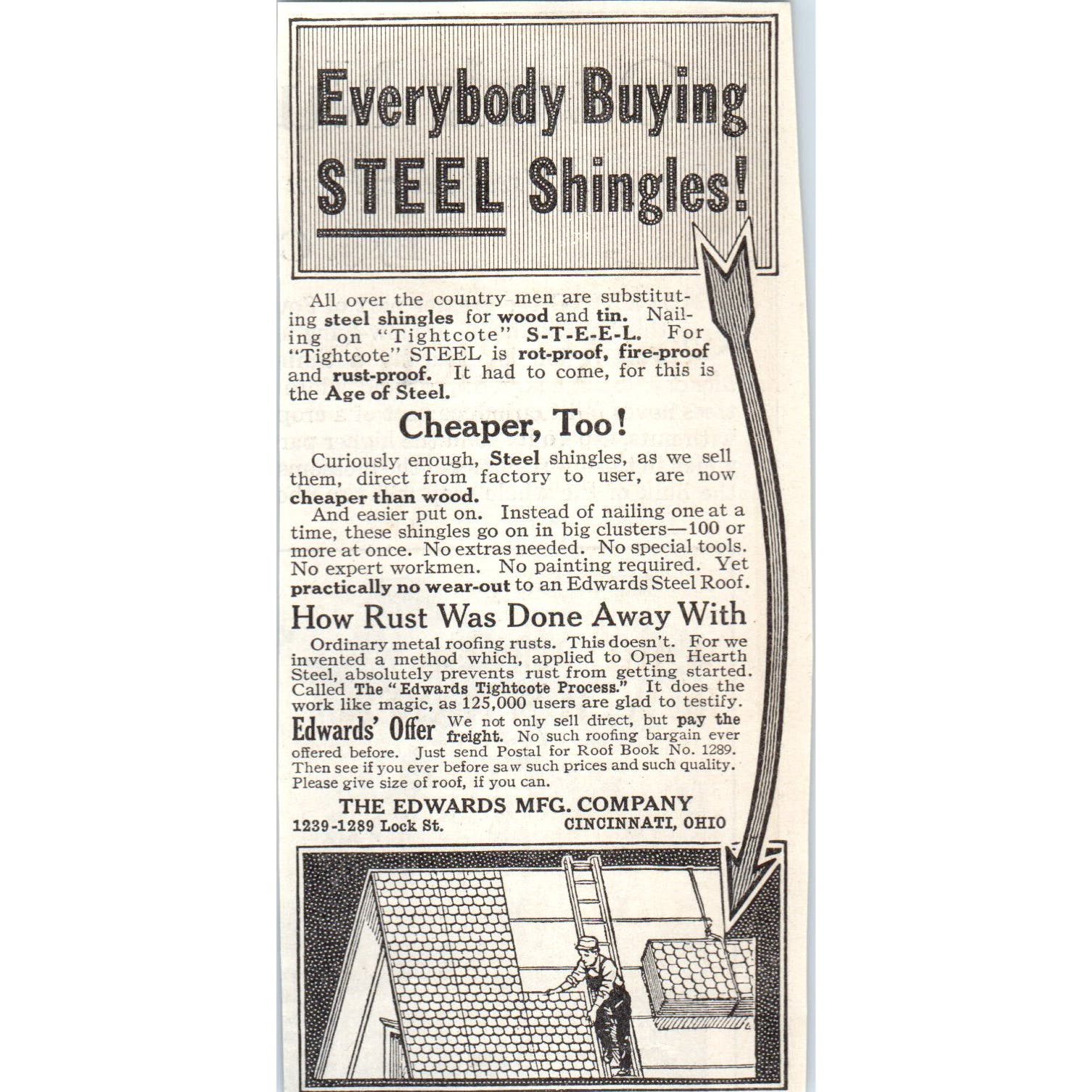 The Edwards Mfg Co Cincinnati OH Steel Shingles 1913 Magazine Advertisement AE7-N7