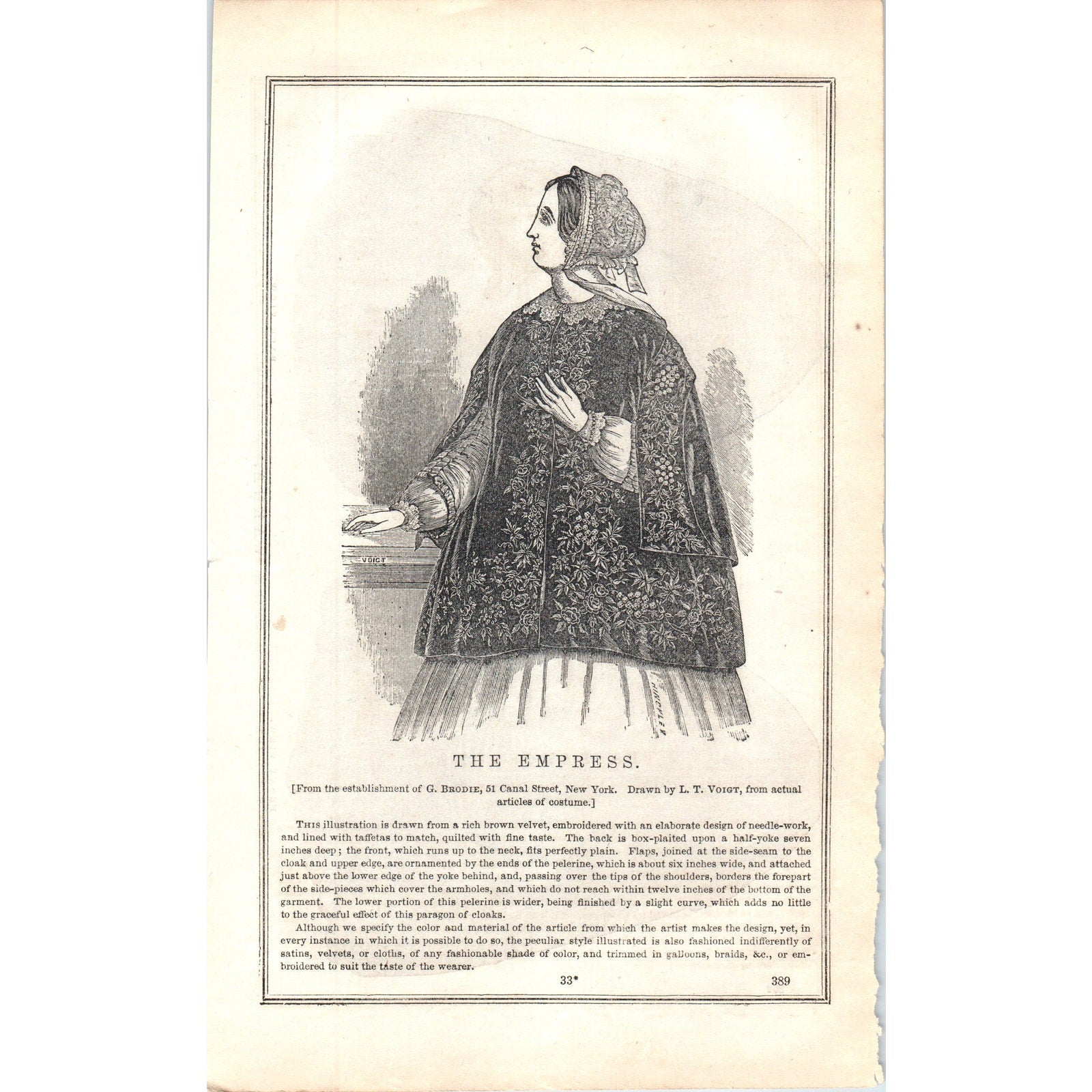 The Empress Lady's Fashion Plate 1857 Original Engraving D19-1