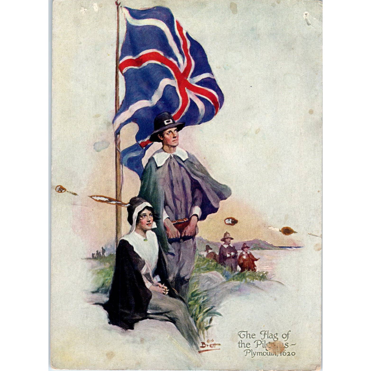The Flag of Pilgrims Plymouth 1916 Brett Lithograph 3.75x5" TK1-21