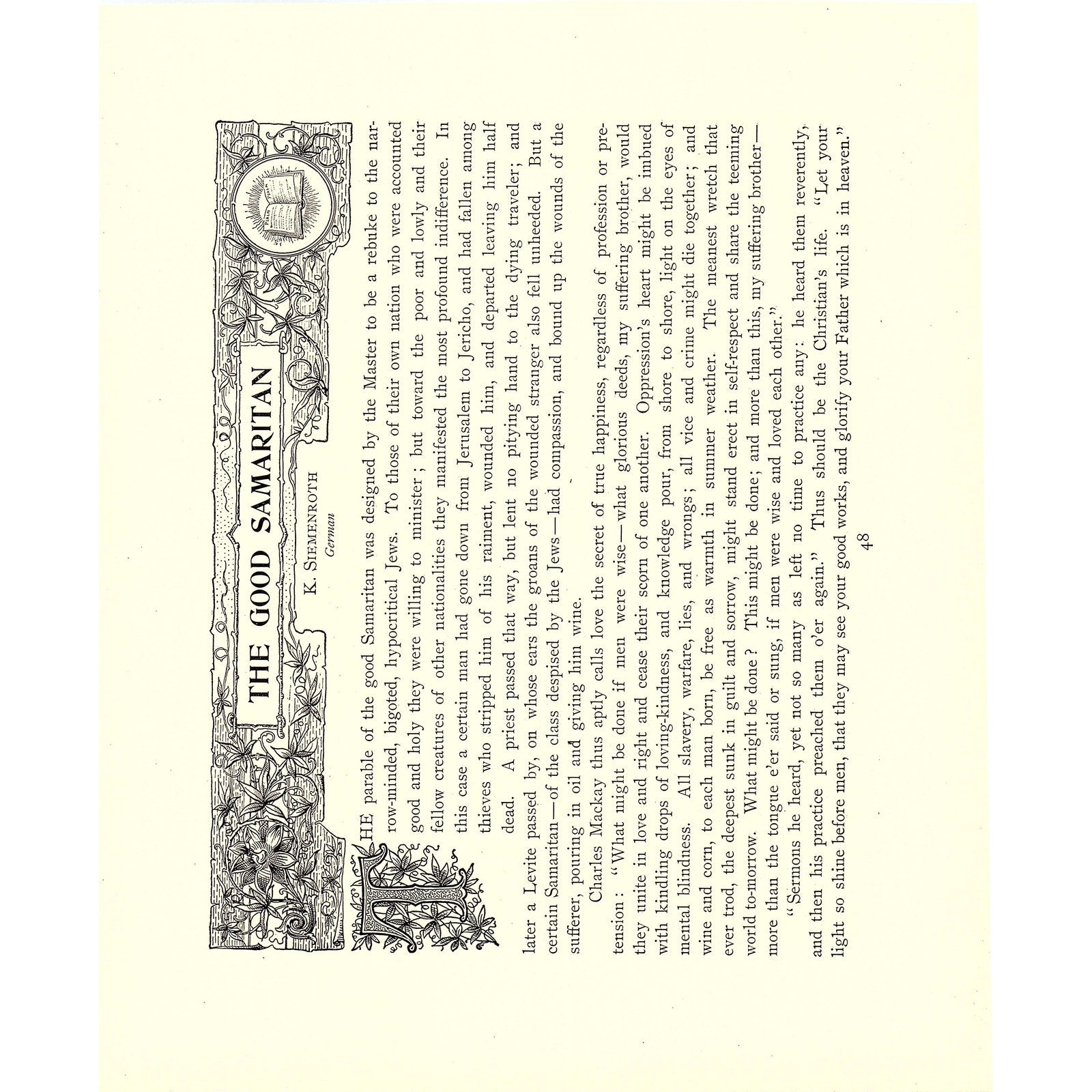 Measures approx 8.5x10.5. Original piece taken from the book - The Crown Jewels of Art by Franklin Edson Belden 1898. Reverse side has description of a different painting due to the layout of the book it was pulled from. There may be some light staining, tears, and/or other signs of wear and tear. See pics for condition.