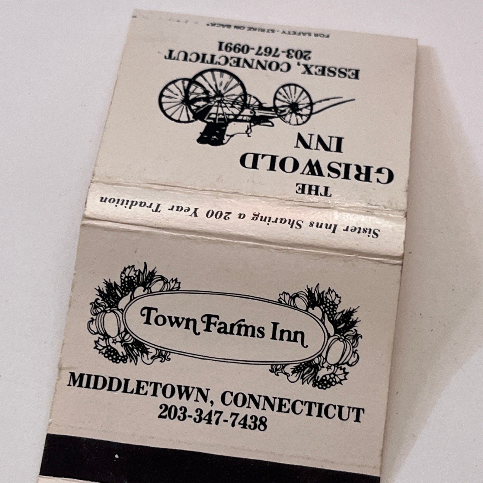 The Griswold Inn Essex, Town Farms Inn Middletown CT Matchbook Cover TB6-MB1-11