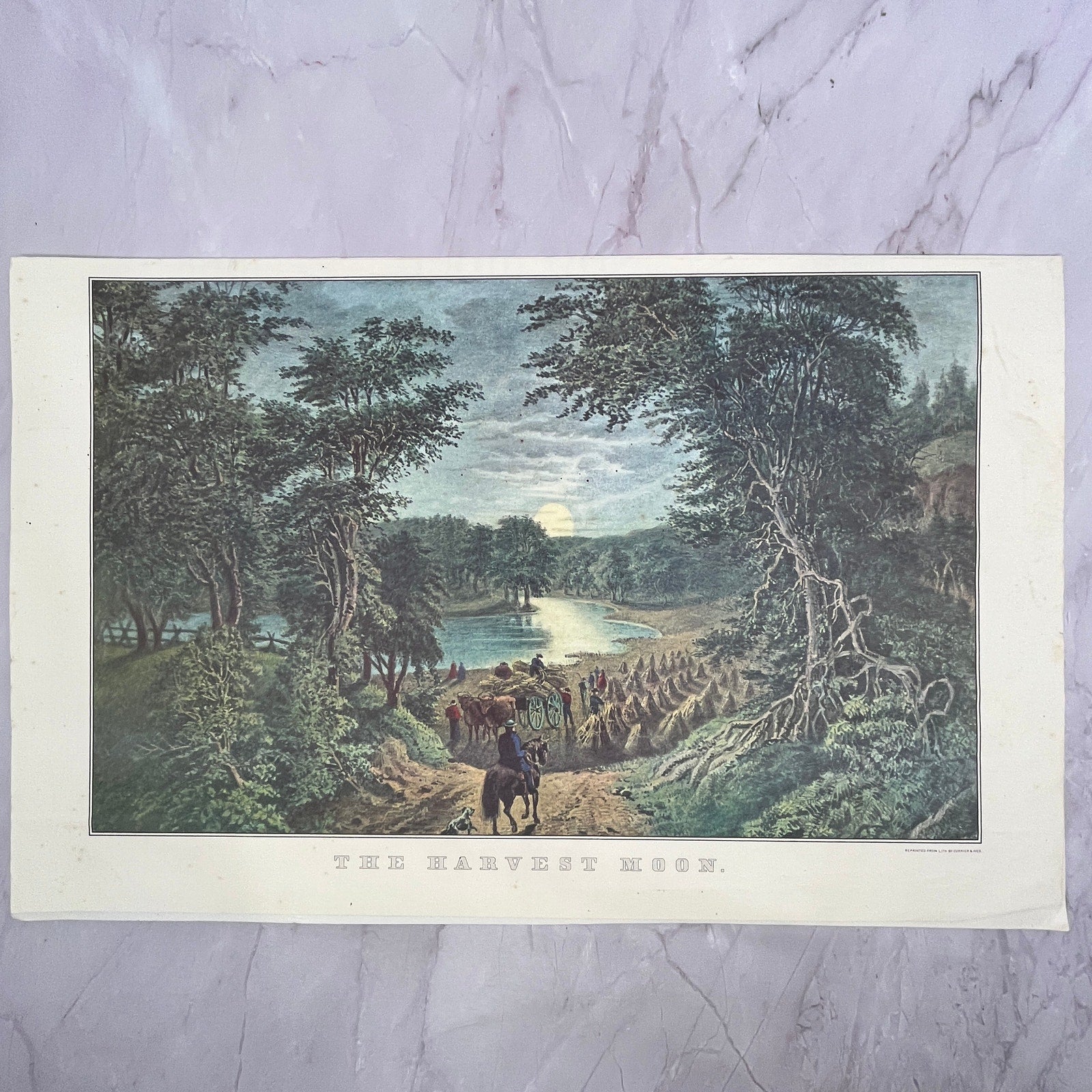 The Harvest Moon Currier & Ives Lithograph 10x16" Art Print V22