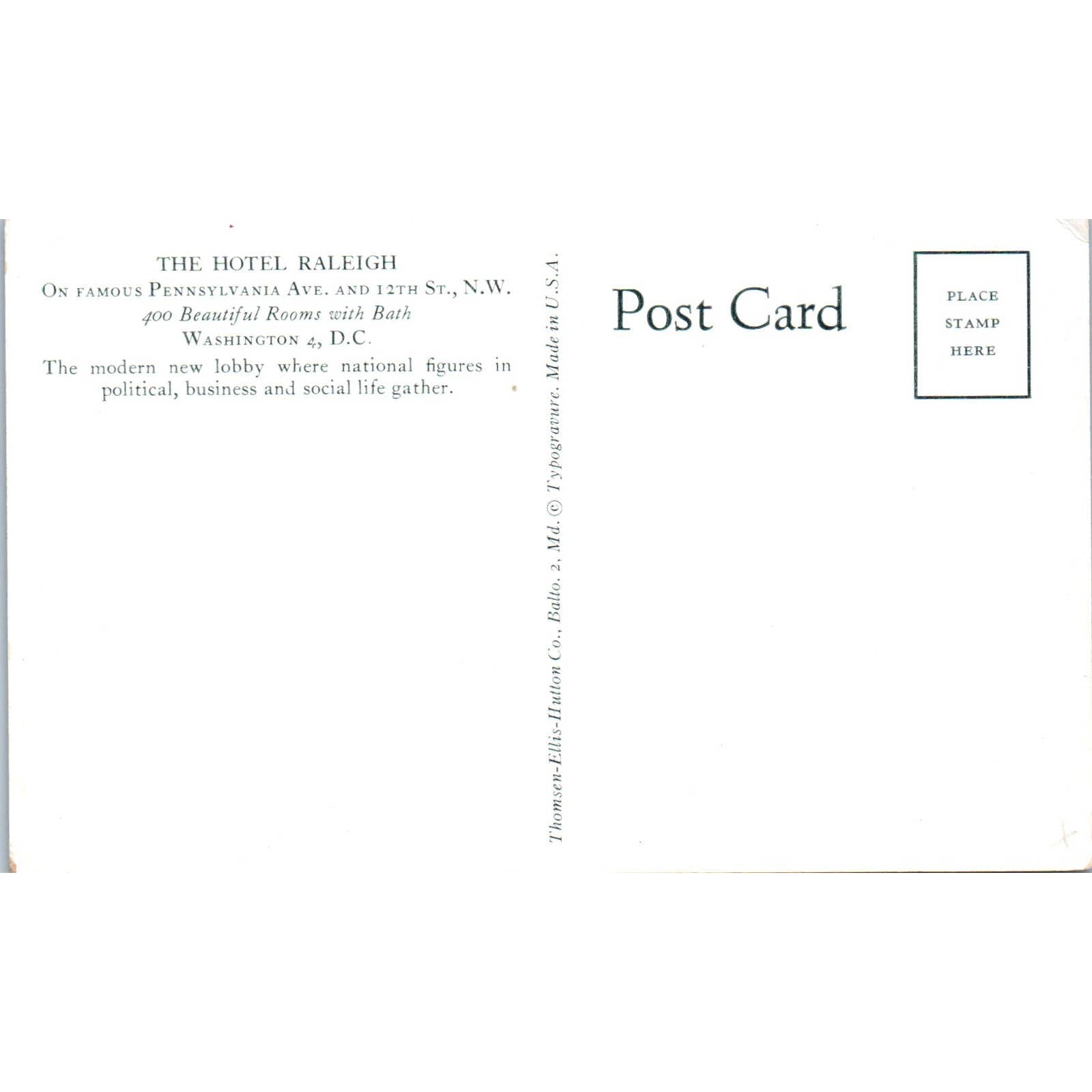 The Hotel Raleigh Washington DC Original Postcard TK1-P1
