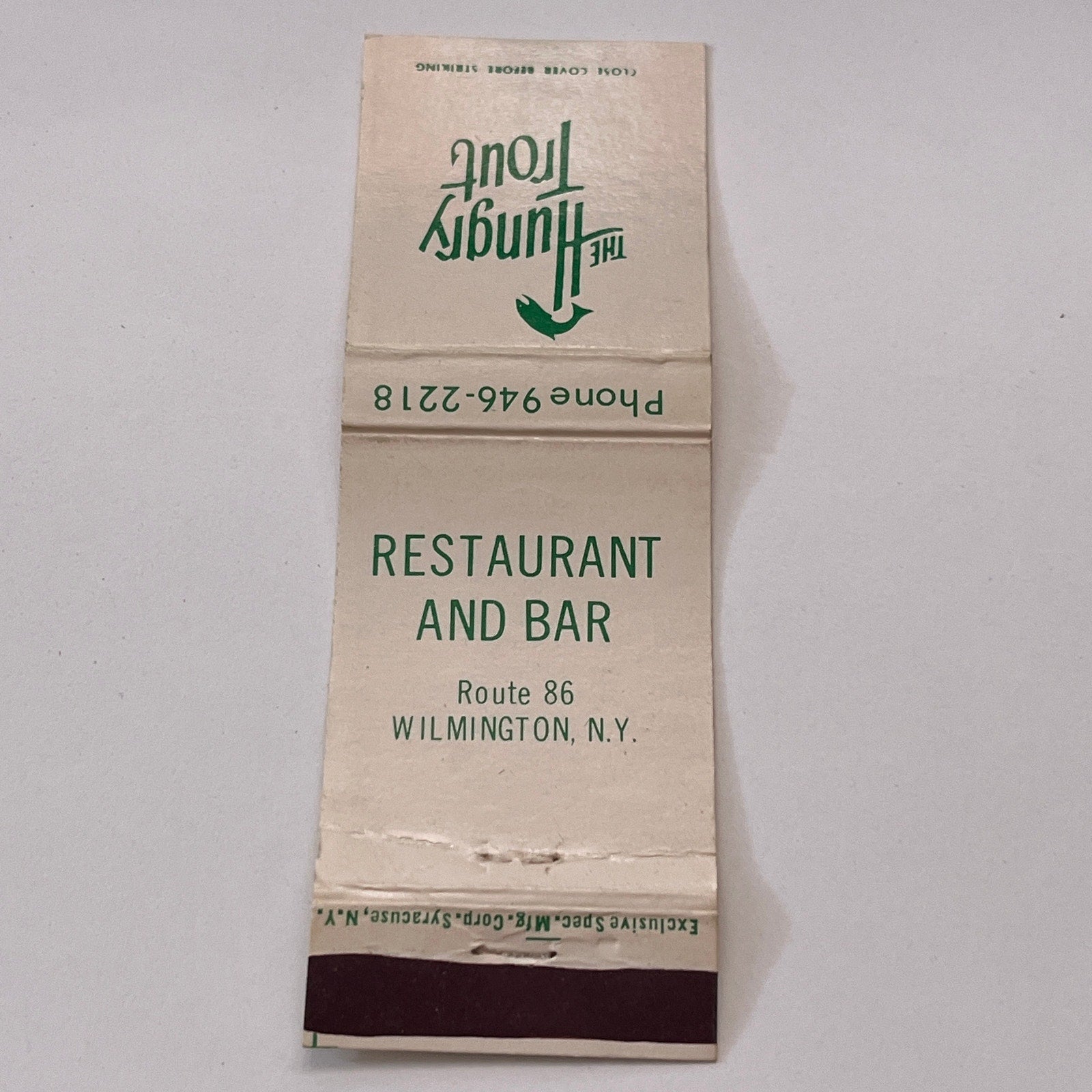 The Hungry Trout Restaurant and Bar Wilmington NY Vintage Matchbook Cover TB6-MB1-10