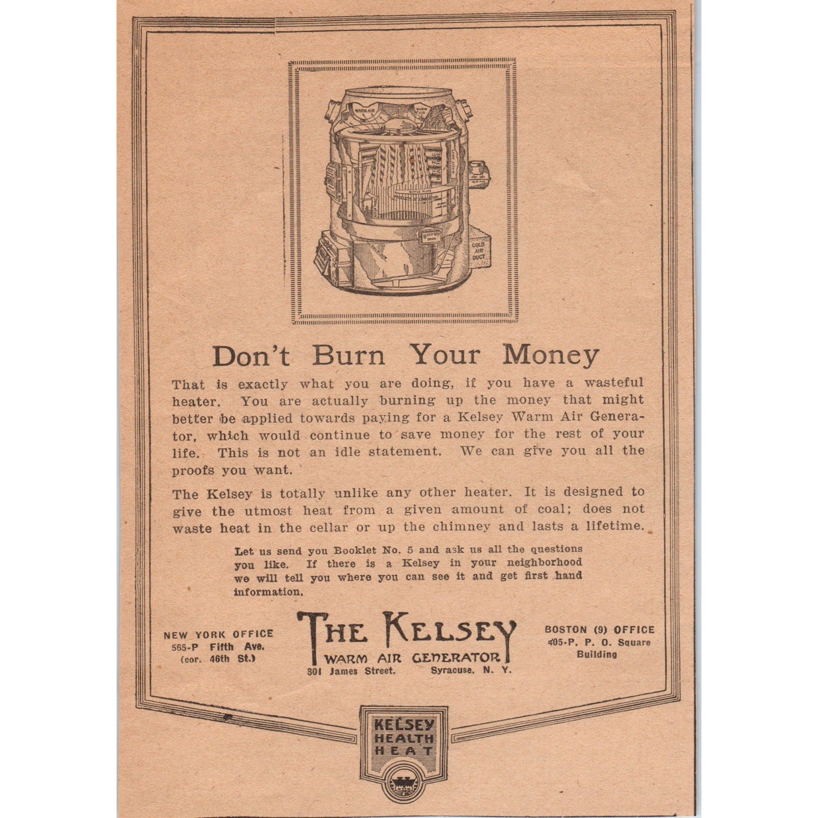 The Kelsey Warm Air Generator Syracuse NY 1922 Magazine Ad AF2-A5