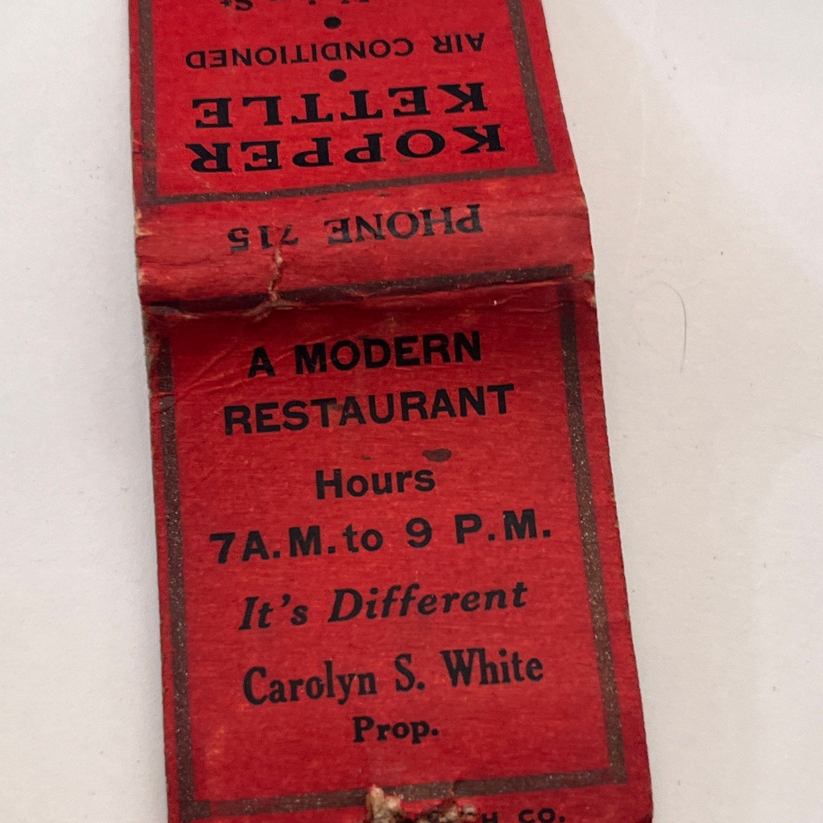 The Kopper Kettle Restaurant Carolyn S White Clinton MA Vintage Matchbook Cover TB8-MB-15