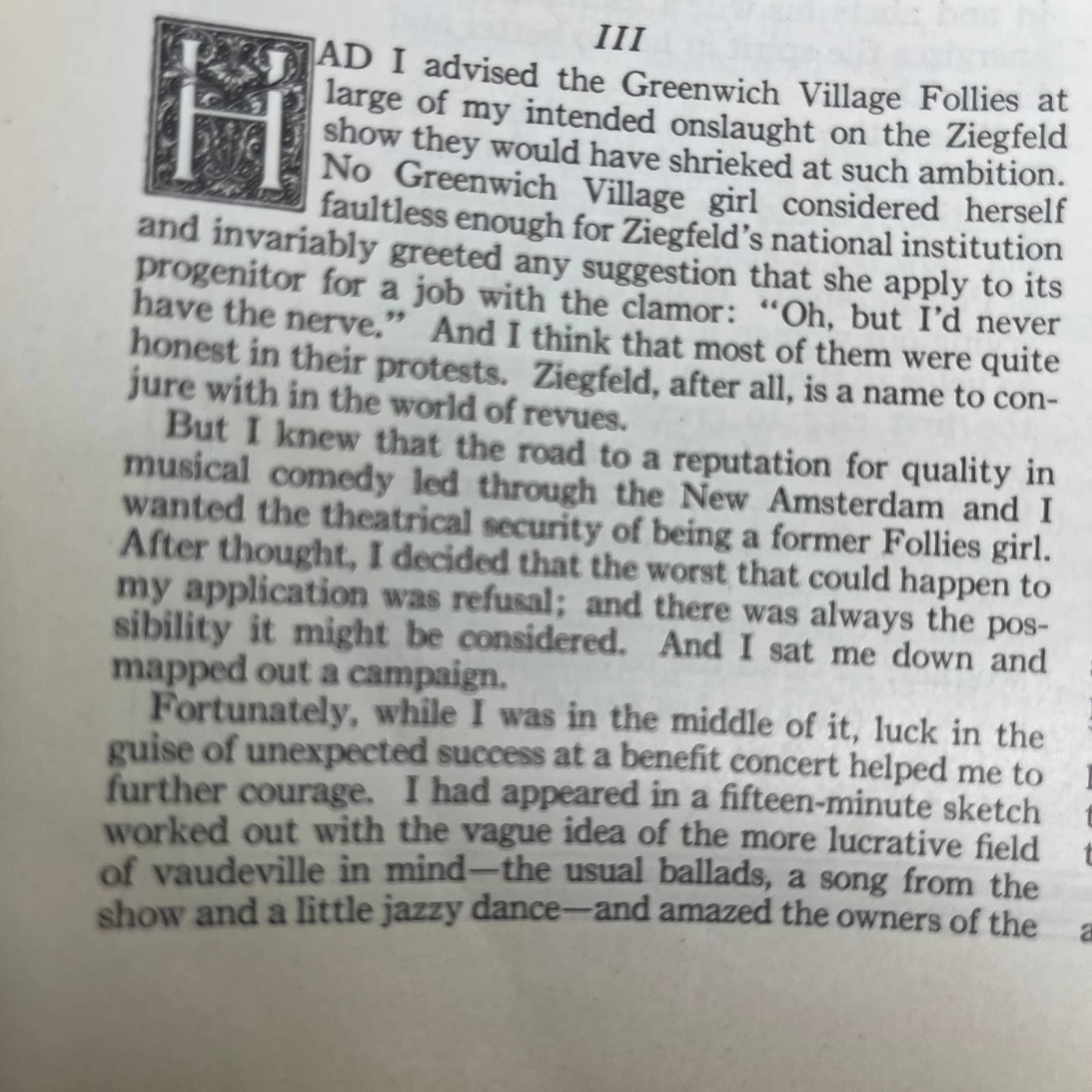 But I knew that the road to a reputation for quality in musical comedy led through the New Amsterdam and I wanted the theatrical security of being a former Follies girl.