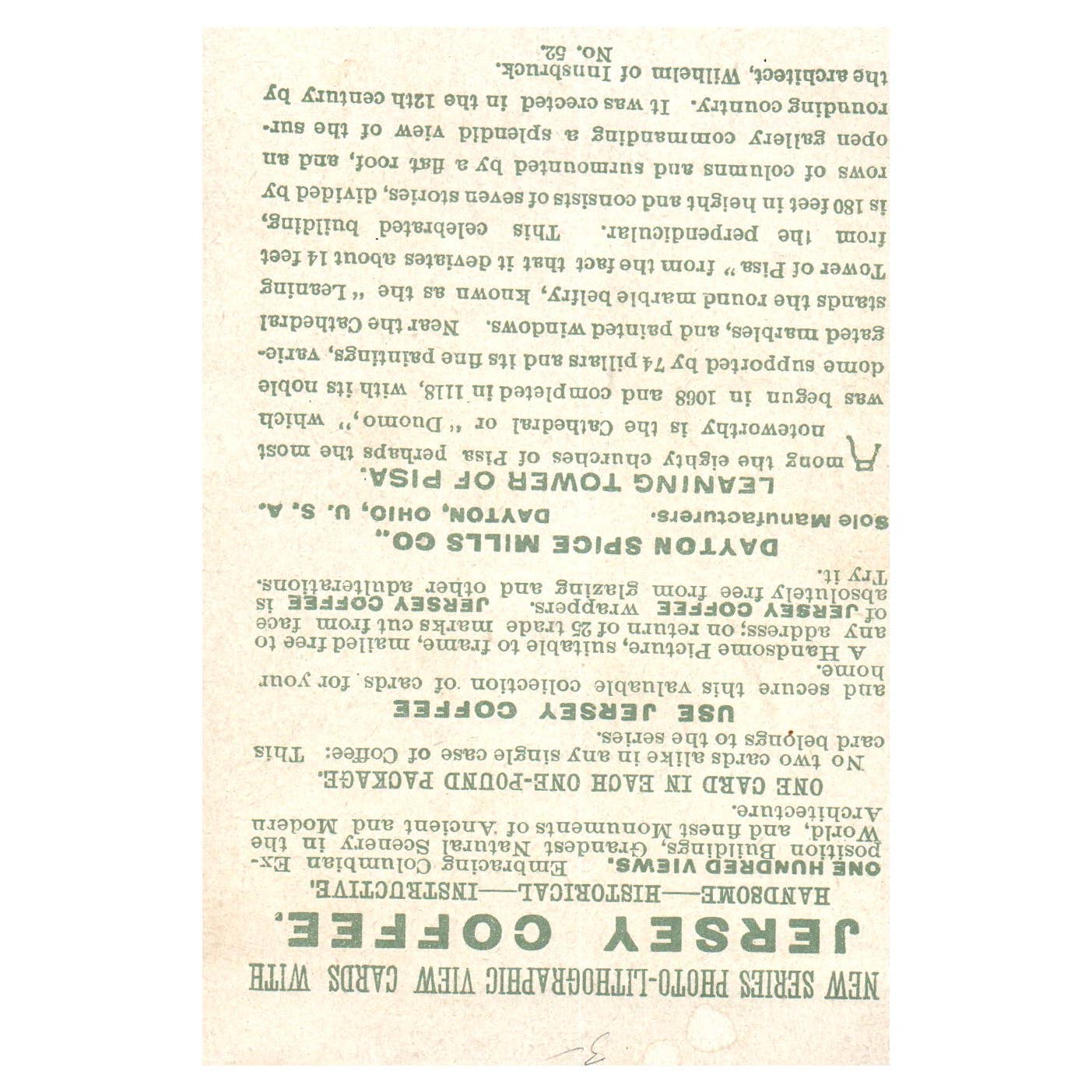 The Leaning Tower of Pisa - Jersey Coffee - 1880s Victorian Trade Card TJ8-3