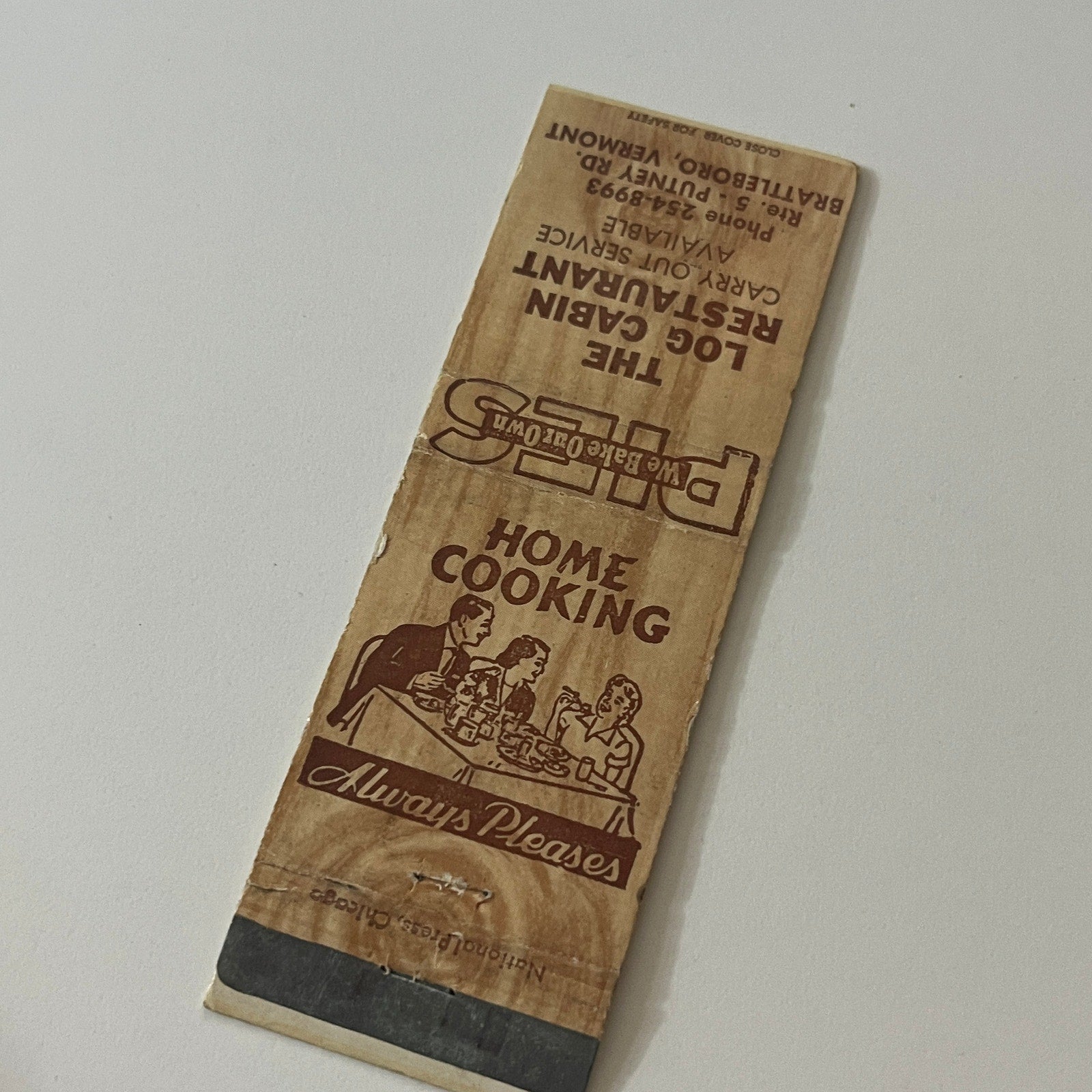 The Log Cabin Restaurant Brattleboro VT Vintage Matchbook Cover TB6-MB2-5