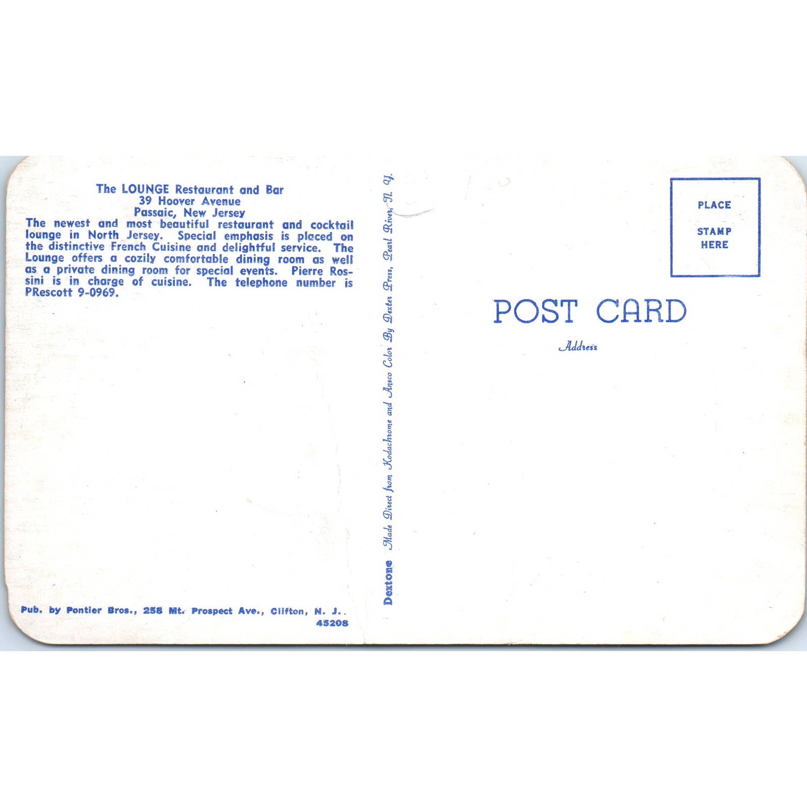 The Lounge Restaurant and Bar Dining Room Passaic NJ Original Postcard TK1-P1