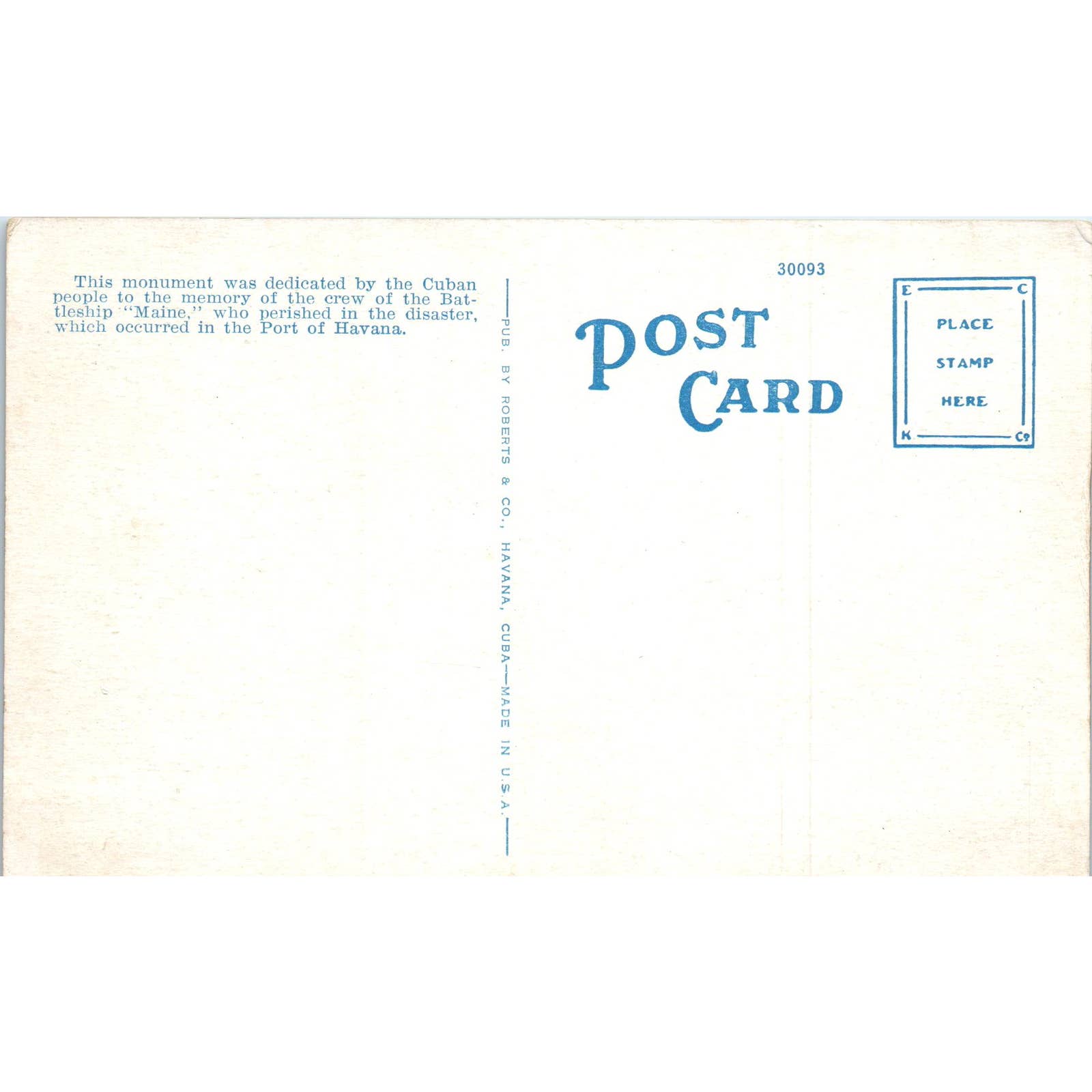 The Maine Monument Havana Cuba Original Postcard TK1-P12