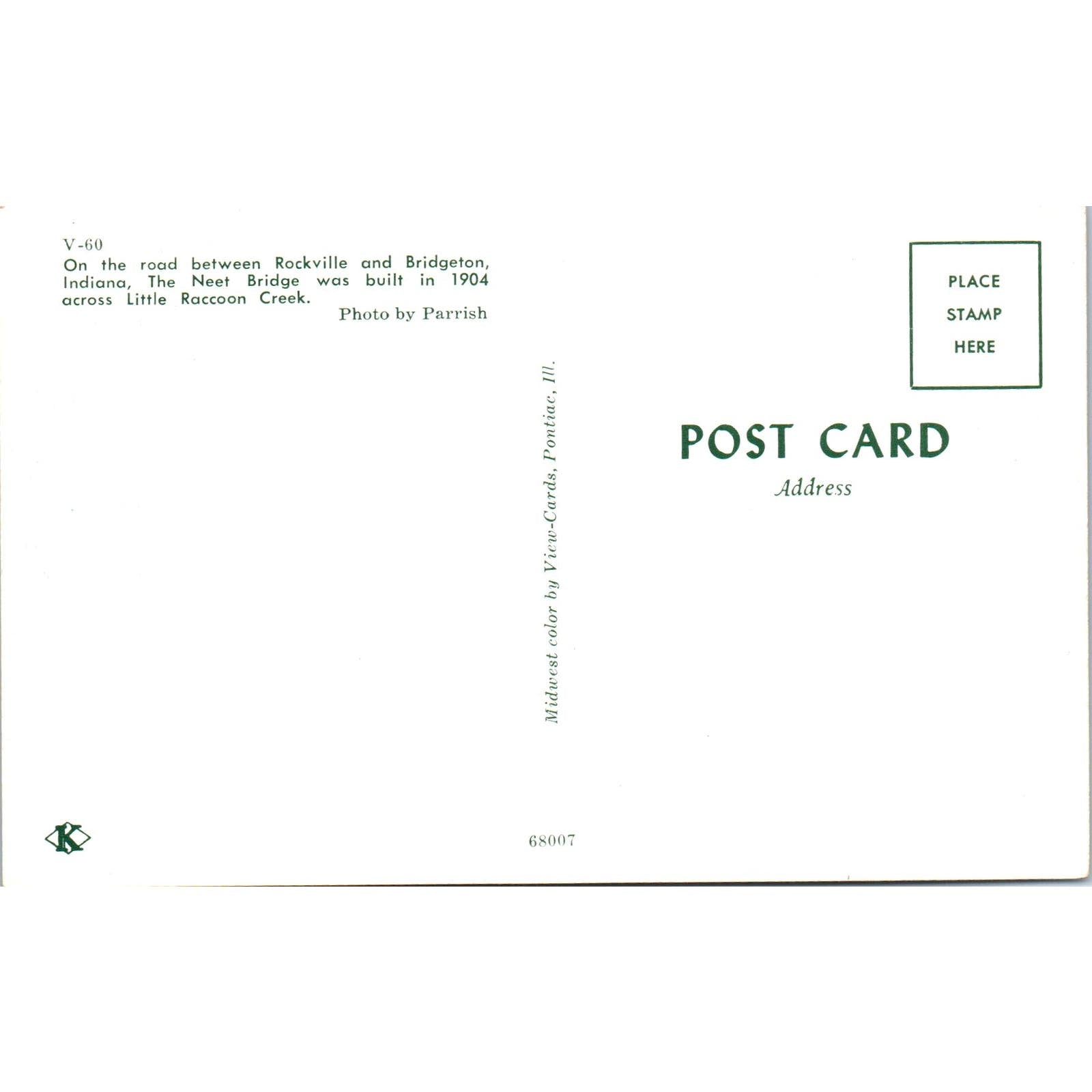 The Neet Bridge Parke County Indiana No 10 Vintage Covered Bridge Postcard PD3