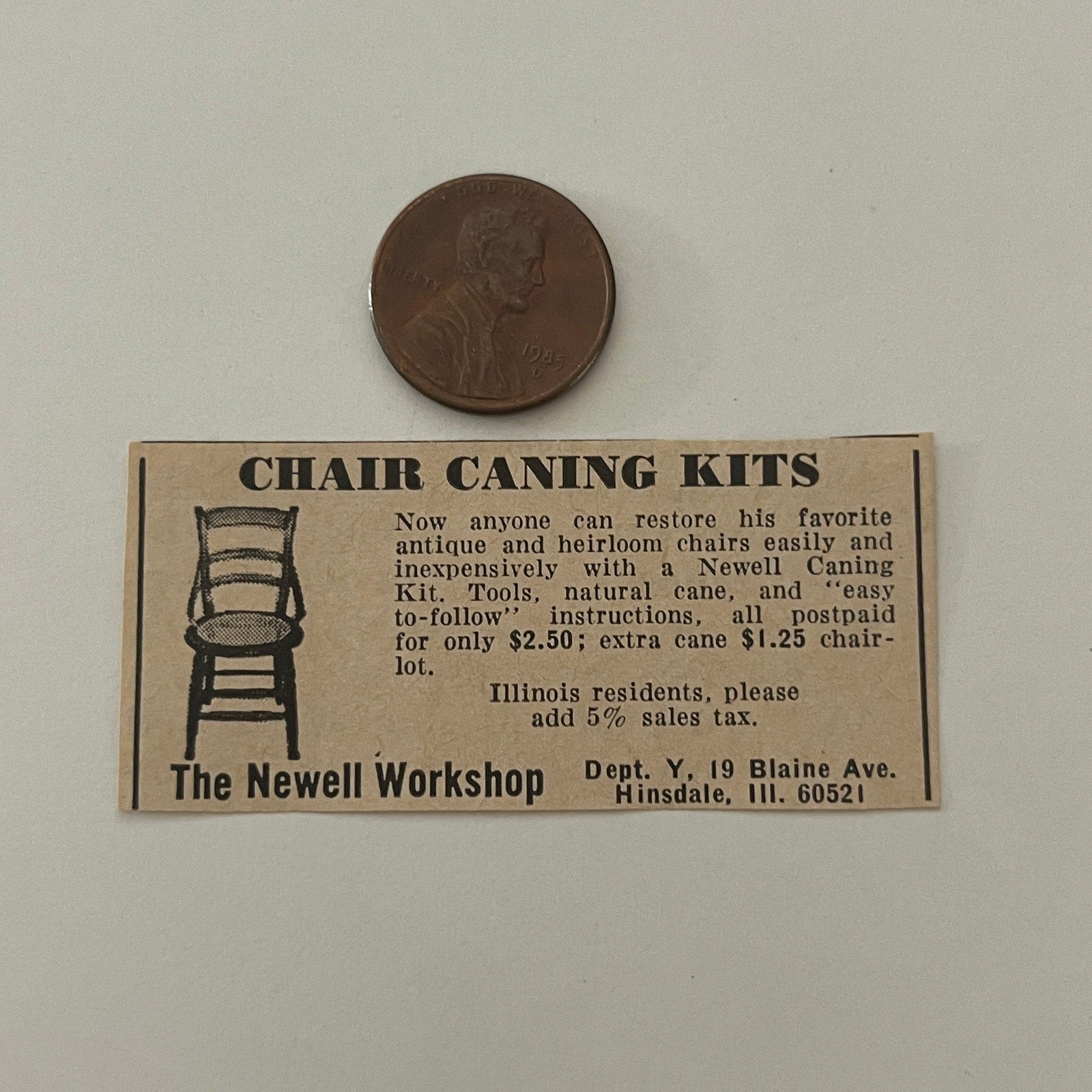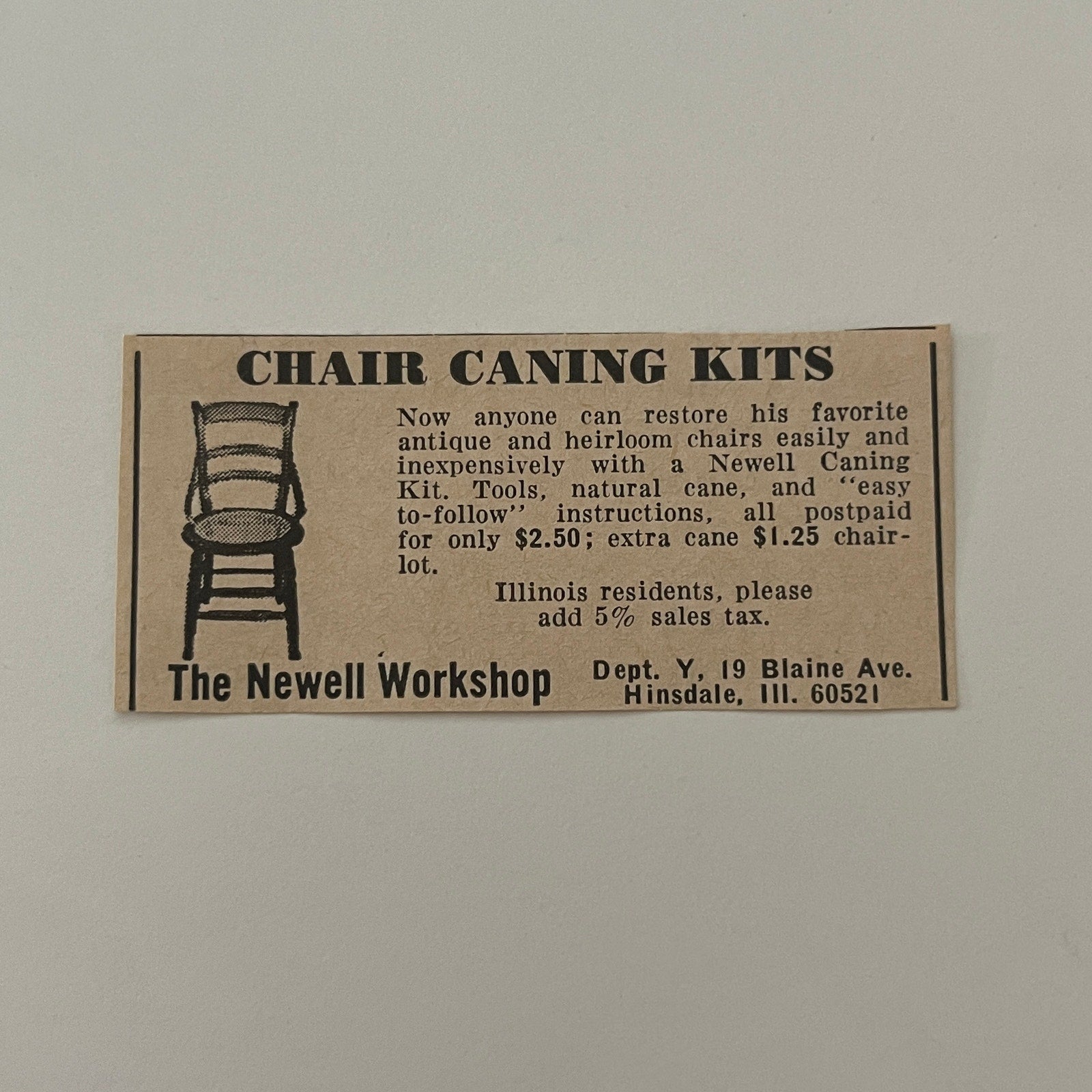The Newell Workshop Chair Caning Kits Hinsdale IL 1971 Magazine Ad SAG4-S18