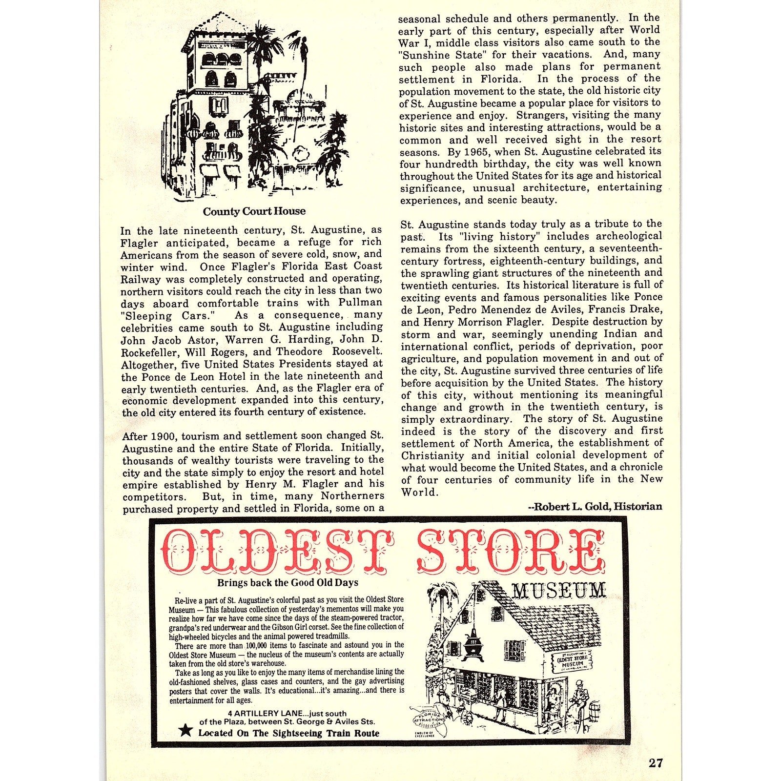 7.5x10" Measurement approximate. Original piece pulled from 1989 St. Augustine Complete visitors guide. Has a slight ripple. See pics for condition.