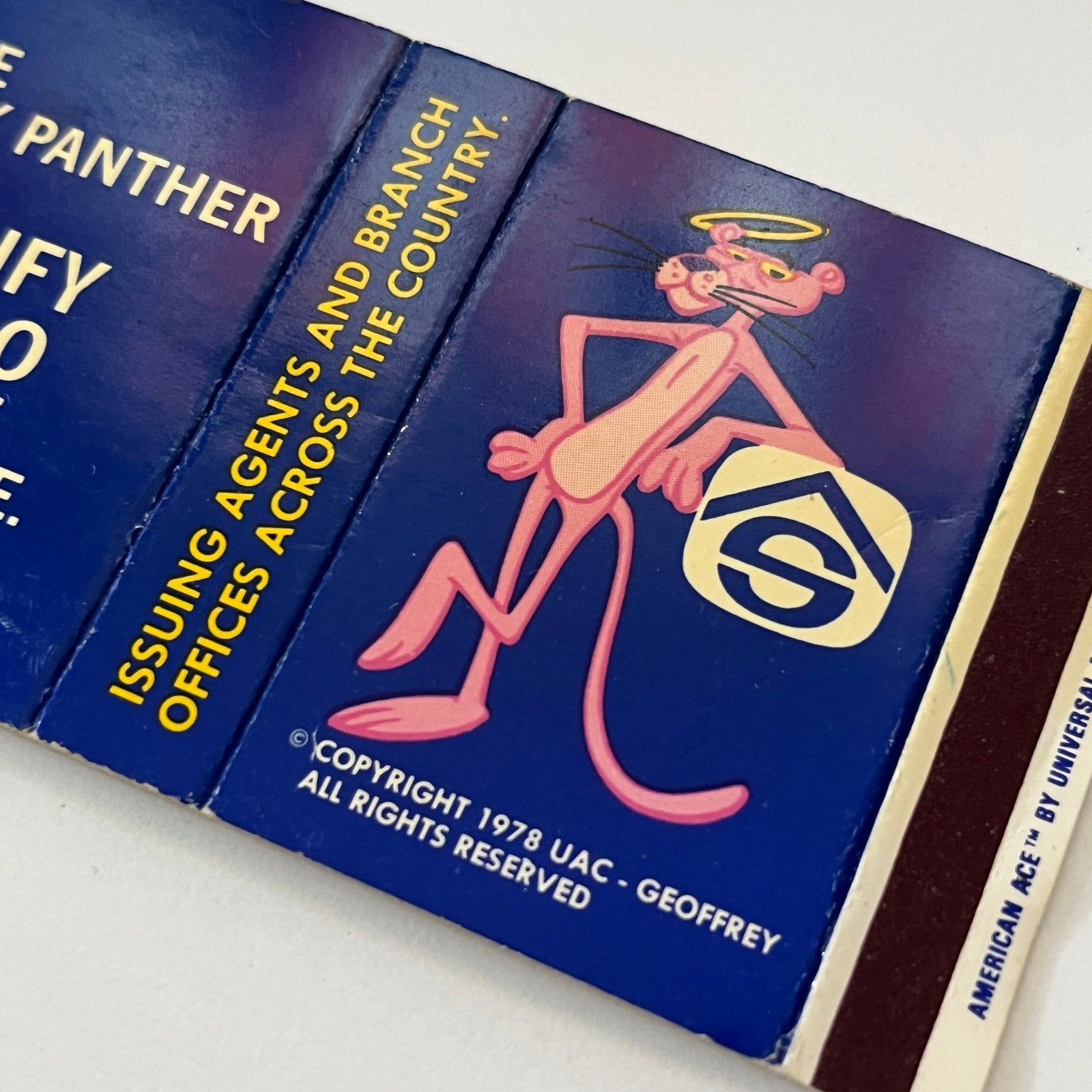 The Pink Panther Says Safco for Title Insurance 1978 Vintage Matchbook Cover TB6-MB1-14