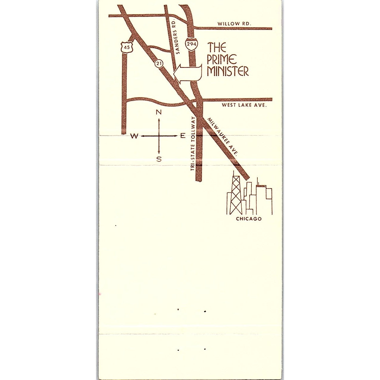 The Prime Minister Restaurant Northbrook IL Vintage Matchbook TB6-MB2-7