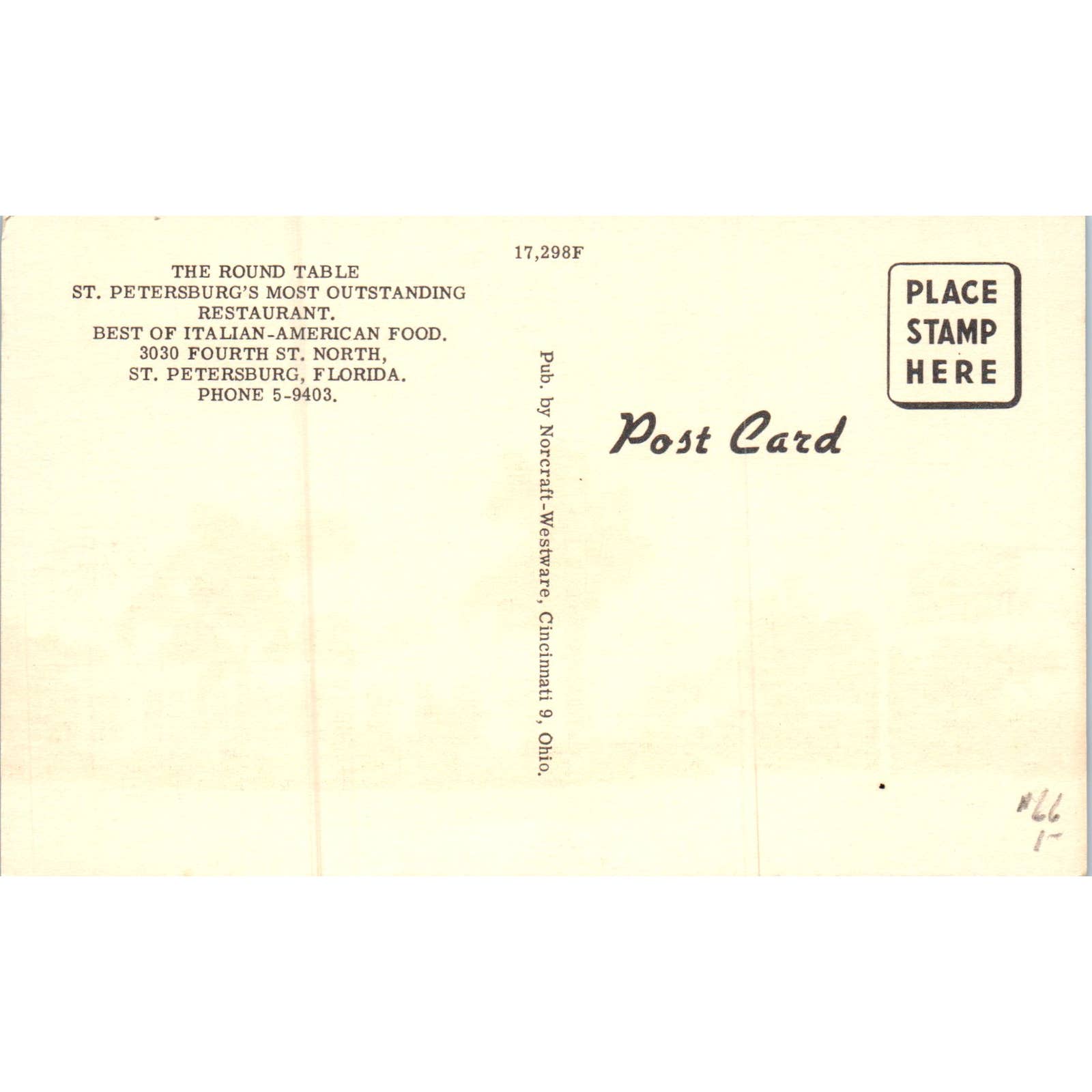 The Round Table Restaurant St. Petersburg Florida Original Postcard TK1-P19