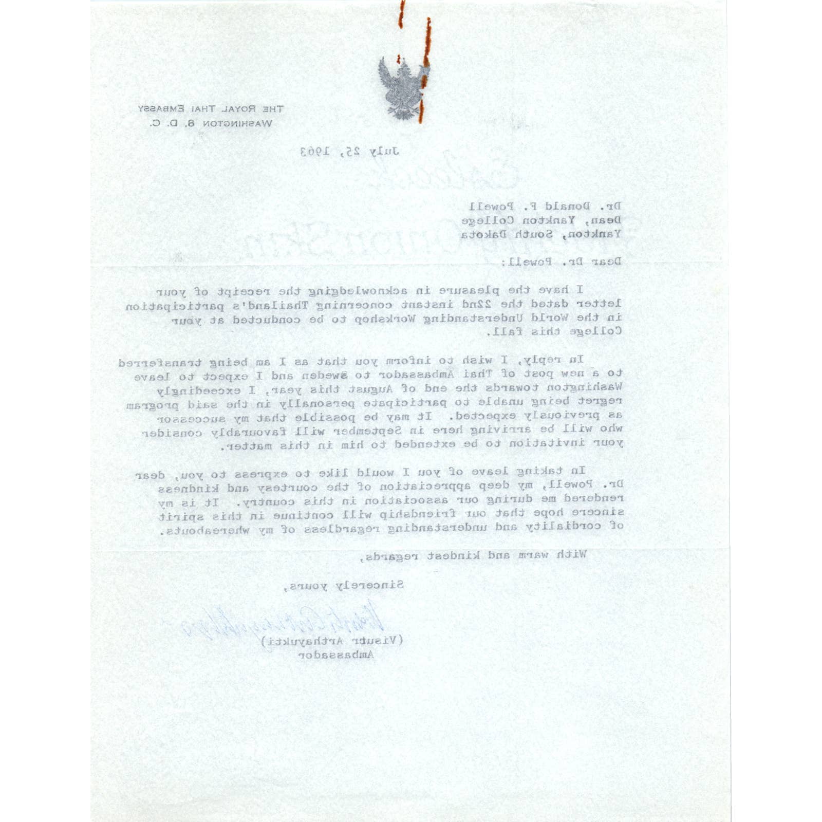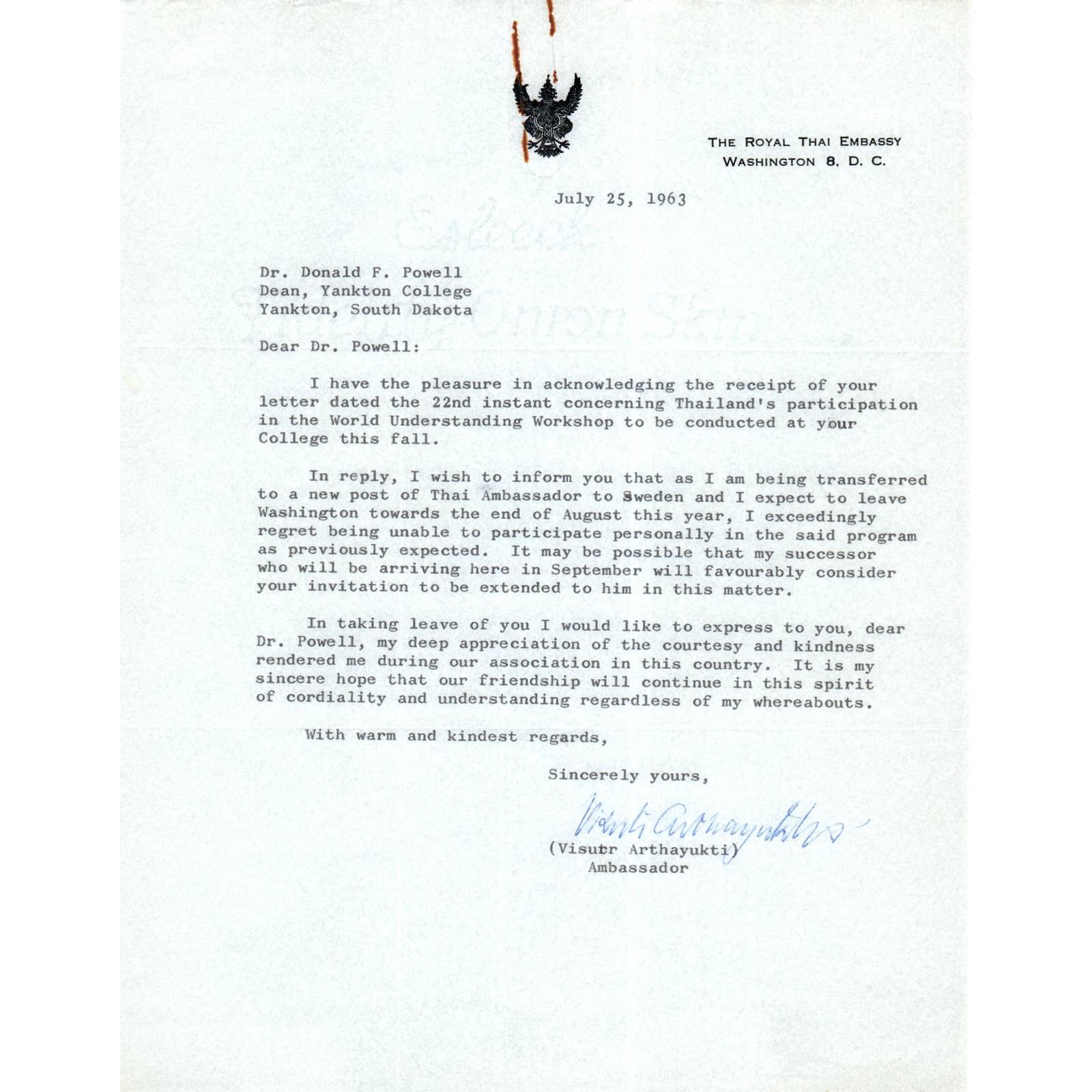 The Royal Thai Embassy Letterhead Memo Visutr Arthayukti July 1963 TK1-P11